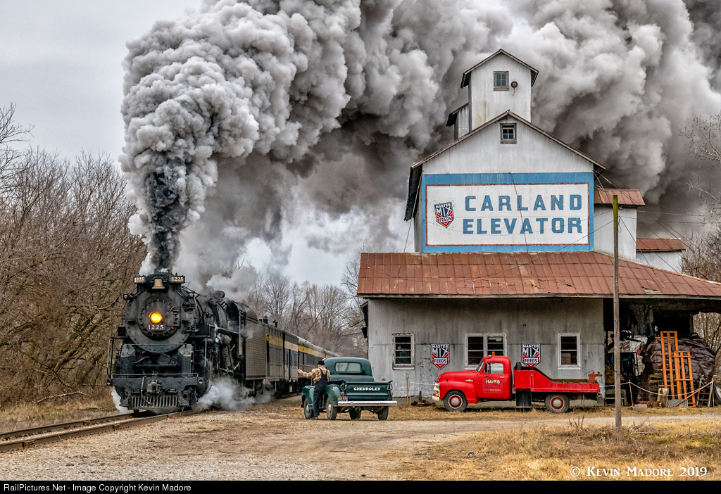 Images from two Lerro Productions events, 10 years apart: 2009 and 2019. The 2009 featured a 31-car freight and NKP 765. The 2019 trip showcased just the 1225 with the Steam Railroading Institute's passenger consist.
