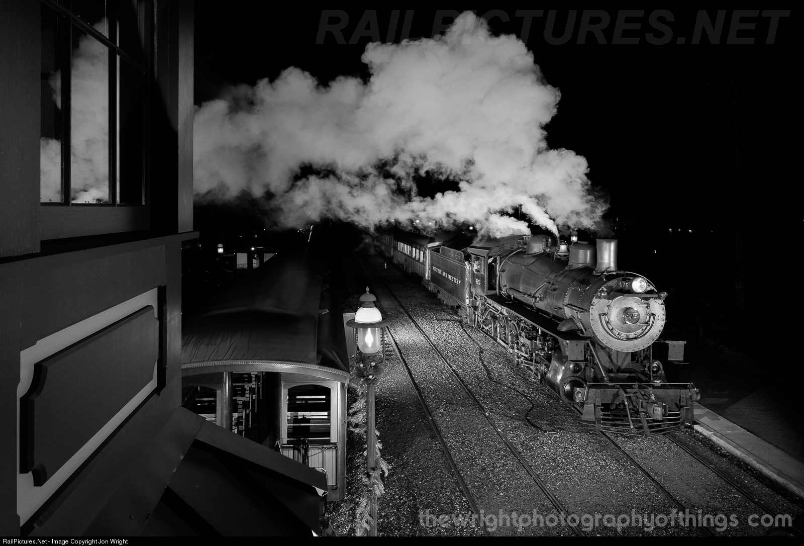 | A view rarely seen from "J" Tower is Norfolk and Western M Class Locomotive 475 guiding a train of families on the final "Night Before Christmas" train of 2018. The locomotive finished its 1,472 day service time at the end of the year and is now due for its FRA mandated inspection.
