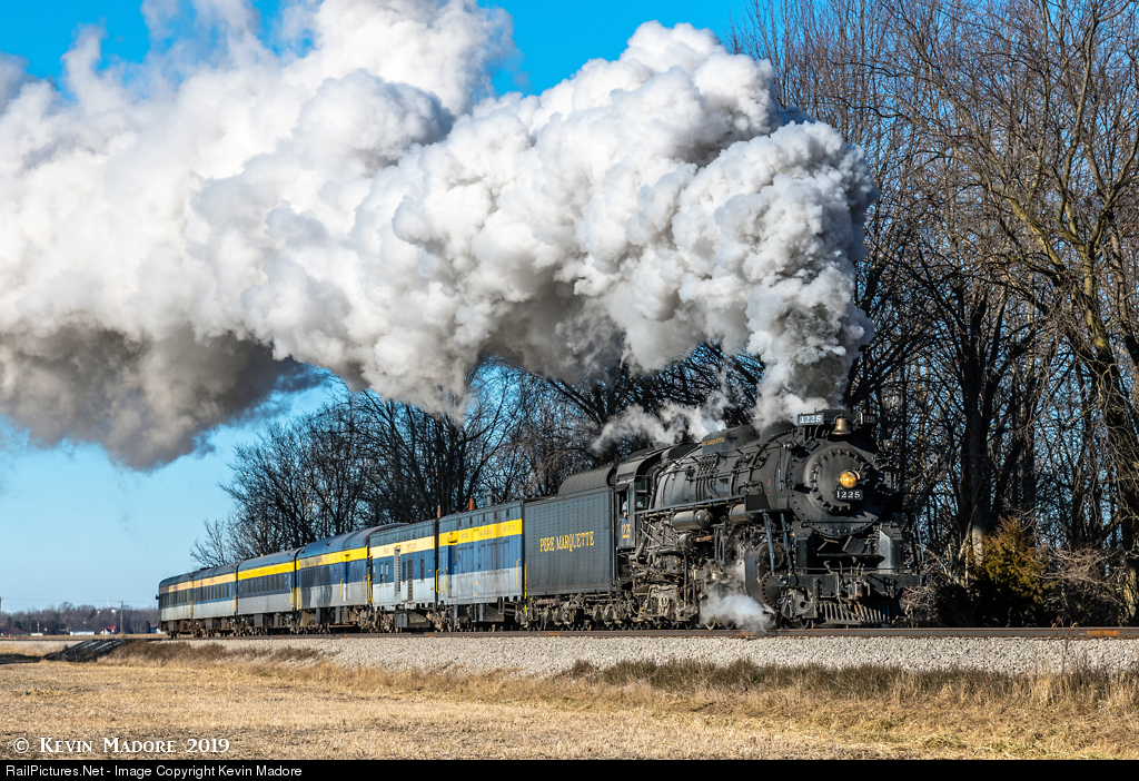 Large steam locomotives, such as the 1225 are extremely popular with rail enthusiasts across the US, but the 1225 is one of the few that is fortunate to have had a long-term relationship with a friendly host railroad that has the kind of 40 mph trackage where she is able to strut her stuff. Michigan's Great Lakes Central Railroad (Reporting mark "GLC") is a Class II regional freight carrier and the largest regional railroad in Michigan, with over 400 miles of track. The GLC is a collection of lines with heritage that is traceable to the Ann Arbor Railroad, Pennsylvania Railroad, New York Central, Grand Trunk and Chesapeake & Ohio....among others.