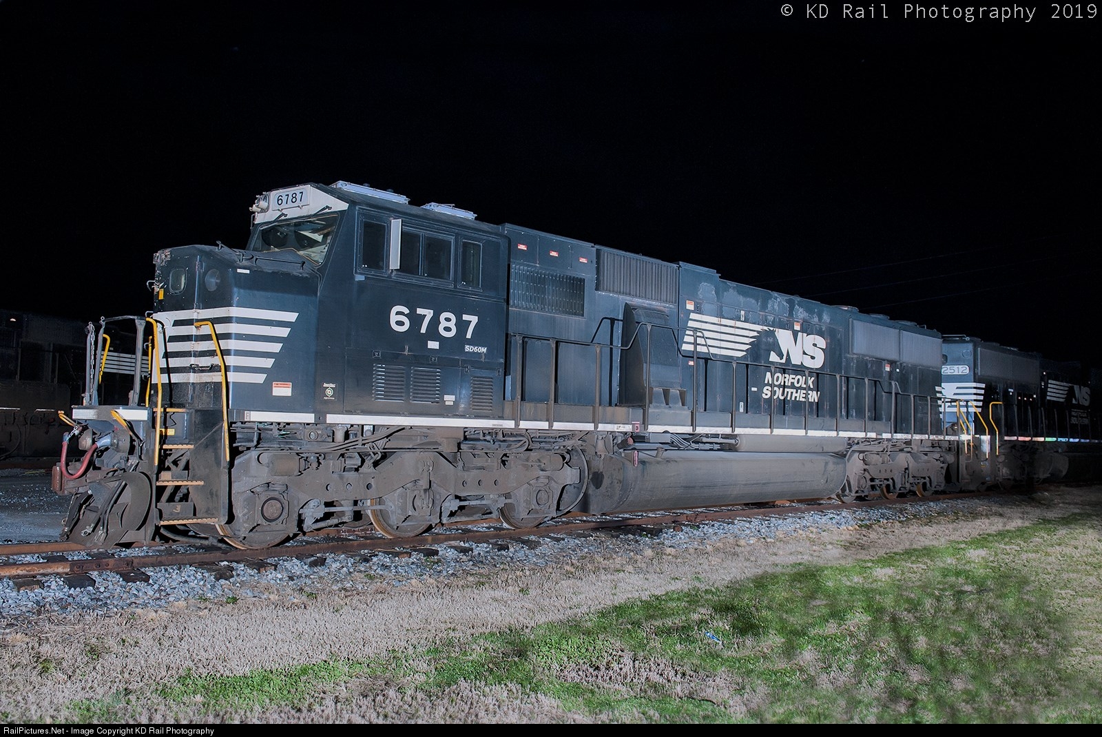 Under the dark night sky we get a last glimpse of what may be the final stand for the SD60 series locomotives on the NS locomotive roster. Trying to keep up with rival company CSX on this "Precision Schedule" motto, Norfolk Southern had to store a large portion of the locomotive fleet for the time being. With a surprising decision as of January 23, the railroad continue forward with certain changes, and officially retire the rest of the SD60s, SD60M's, and SD60I's, and put them on the market for other opportunity else where. What can you say about the 60 series, other than the fact that the first generation of the SD60's was a sorta come back move by EMD from the failing SD50's that had all sorts of mechanical issues in the 1980s. A total of 1,144 of these locomotive including the early safety cabs was produce since their debut into road service in the 80s, and 90s, NS 6787 was one of 75 SD60M that got it humble beginning with Conrail til the 99 split off where 30 of the SD60M's was sent to CSX and, the rest of the 44 60M's were sent to NS. From a stand point of a railfan seeing a EMD SD60 series is one worth catching especially in the world of GE, but we also have to remember that the railroad like Conrail, Norfolk Southern, and CSX had got their money worth out of the 2 to 3 decade old locomotives, and it was time to pass the torch of modern locomotives on to a new generation of diesel locomotive that will pave a way for the future of railroading. Thus is the end of an era for now. Note: Photo was taken from Public property on the fence line.