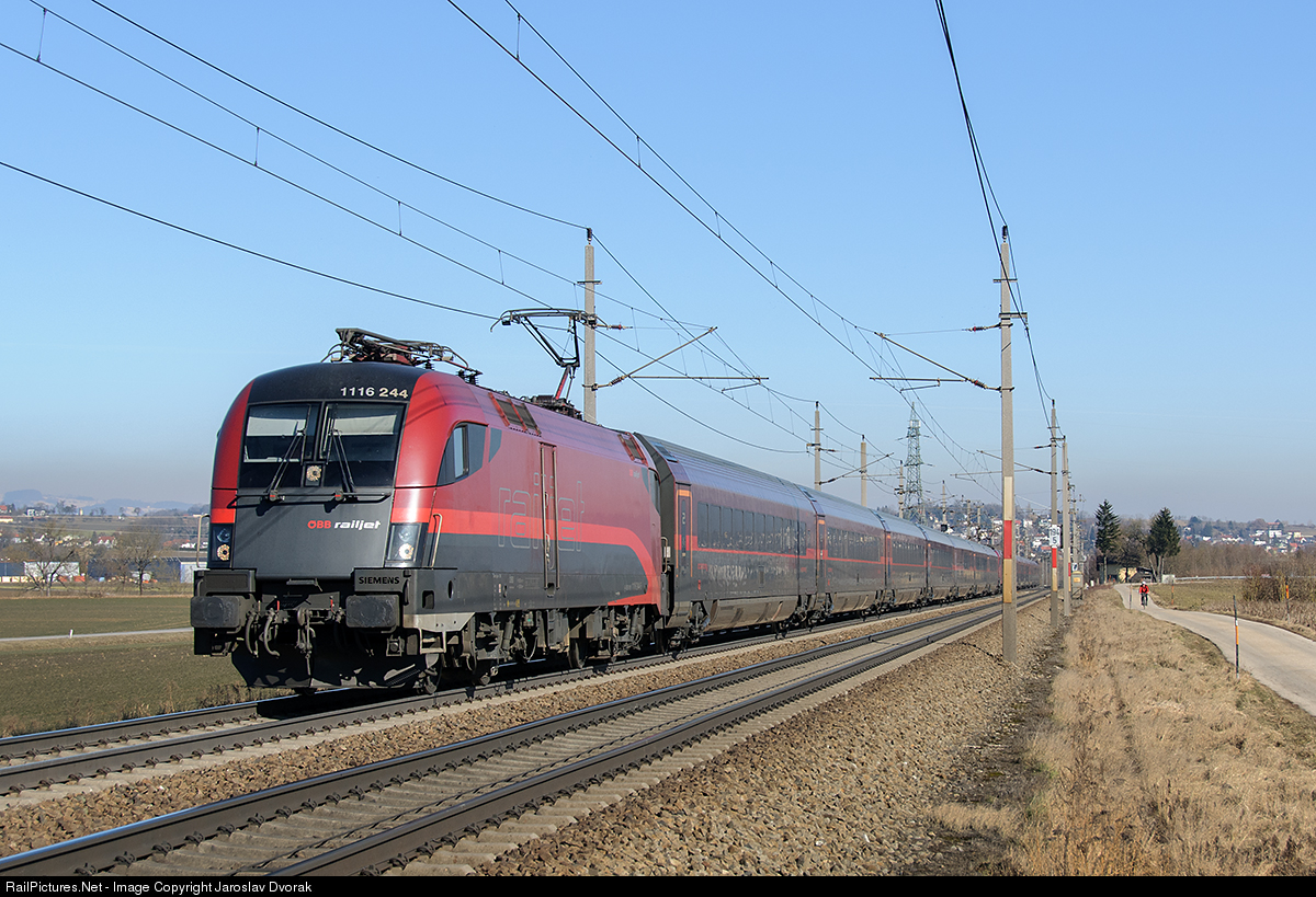 RailPictures.Net Photo: RAILJET 1116 244 5 Austria Federal Railways (ÖBB) RAILJET 1116 at Linz - Leonding, Austria by Jaroslav Dvorak