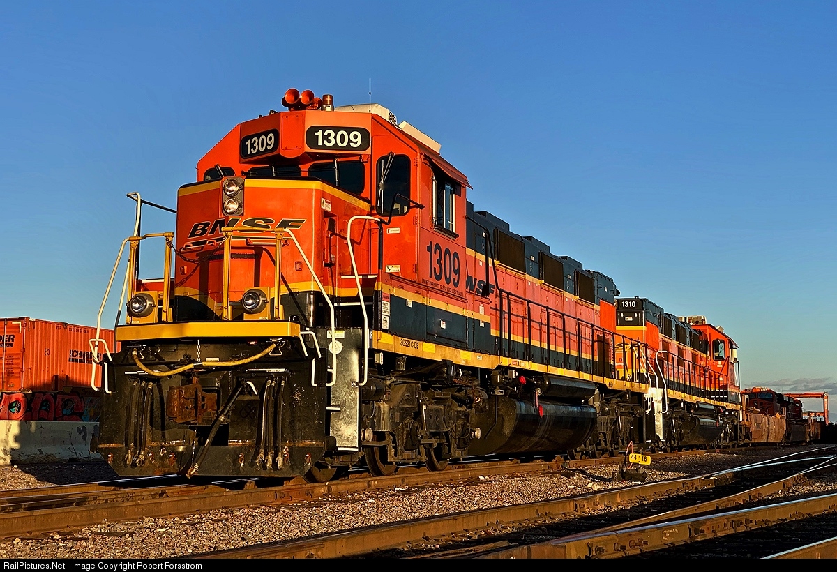 Witnessed at Los Angeles, CA, Saturday the 16th of February, 2019. Basking in sunny, yet cool (for California) 55° air and very late afternoon solar rays. BNSF 1309 and 1310, sequentially numbered National Railway Equipment rebuild locomotives, each dubbed 3GS21C-DE.