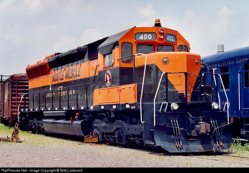 GN 400 sits at MTM's Jackson St. Roundhouse, GN 400 is named the "Hustle Muscle" because it was the first EMD SD45 built.