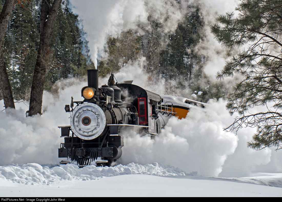 On Saturday of the annual D&S winter photographers weekend, the visiting SP 18 pulled a three car train from Durango to Tall Timber. Originally the plan was to go to Cascade, but a snow slide blocked the line between Tall Timber and Cascade. Despite the missing few miles, there were plenty of good photo ops including this runby at Tall Timber. Due to severe summer fire risk, the D&S is in the process of converting one or more of their coal burners to oil, and the SP 18 was leased to provide D&S personnel with more familiarity with the logistics and operation of oil burners. The latest information indicates it will be at the D&S until sometime this summer, and will make occasional scheduled runs as well as some photo charters.