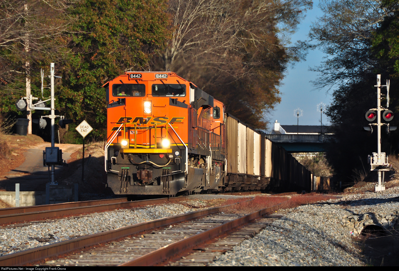 The late afternoon light finds BNSF 8442 pulling one of the numerous Plant Scherer train sets as it heads west for another load of black diamonds for the famous Georgia Power plant. The CofG line at this time was partially downgraded and saw only locals and empty coal moves such as this about one to two times a week. The following year would see the return of through freight trains, 4 in all, polishing the rails here which was a welcomed sight. Although, as NS begins to “clean sheet” their way into the world PSR, one can only guess what the future holds for this clearance restricted line. Hopefully the sign on the left is not an indication of its fate.