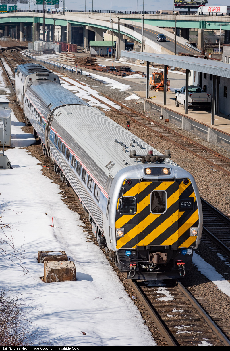 The ex-Metroliner cab car #9632, which leads the train, got a newly painted light gray roof. |