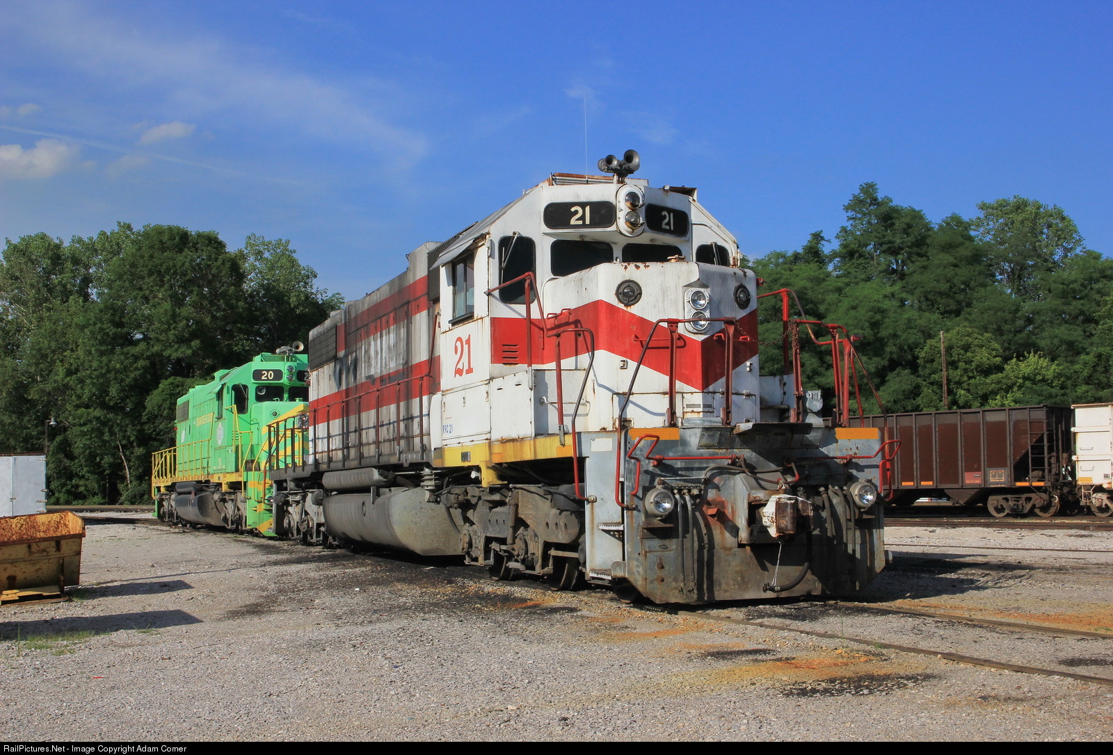 | Respondek SD38-2's 21 and 20 sit unassigned at the Yankeetown Docks shops. The 20 and 21 were both built in 1972, and painted into Bicentennial paint. They were both repainted into different YDC paint schemes. The 20 got repainted into Respondek paint with the takeover, however 21 kept its YDC paint. |