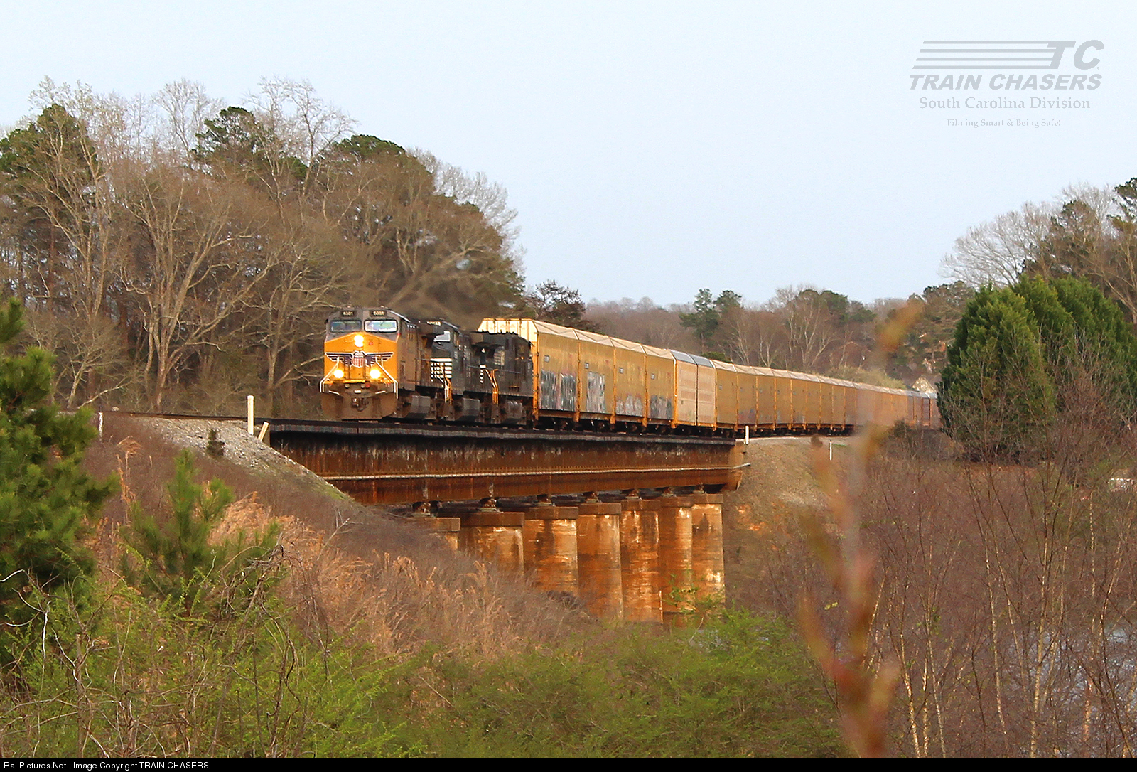 | NS 237 crosses lake Hartwell in Clemson, SC with UP #6381 ( former SP #322 ) leading heading for Atlanta, GA. |