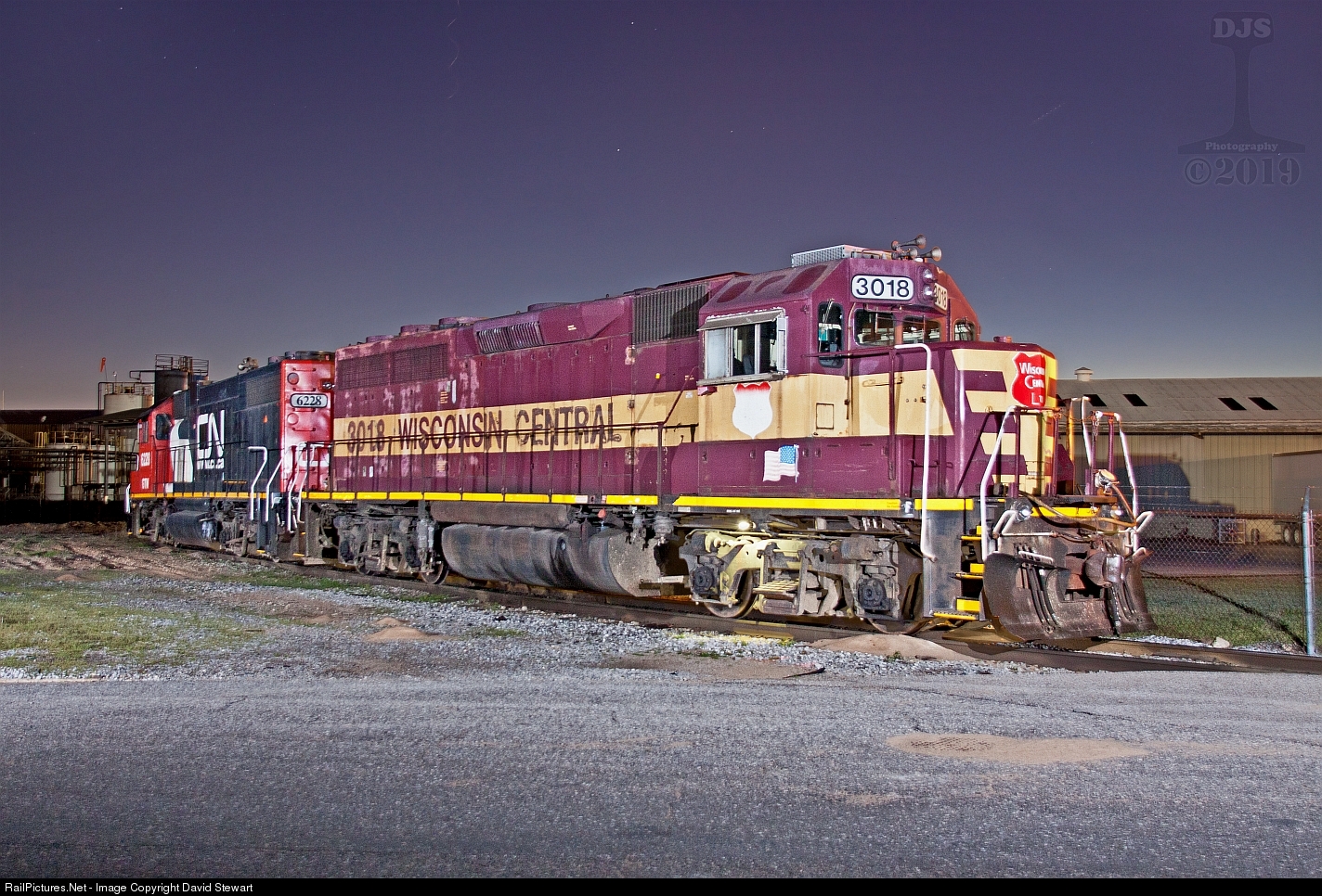 WC GP40 3018, the last Wisconsin Central livery road unitĀ still serving on Canadian National's roster stands at Presidents Island in Memphis, Tennessee during sunrise of March 17, 2019. PS Whoever touched up the nose herald in the summer of 2018, you did a good job, it hasn't gone unnoticed. Ed Burkhardt would be proud to see a member of his great legacy living on.