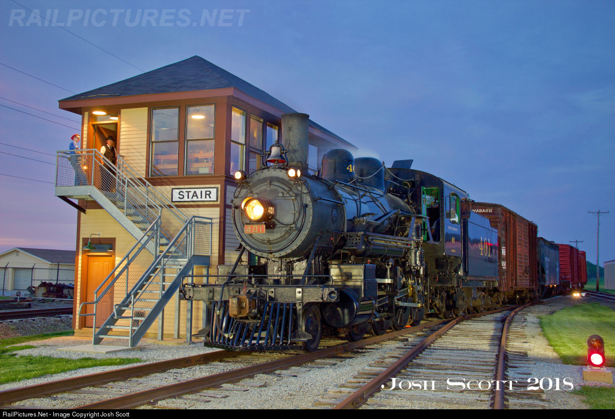 | Southern Railway No. 401 poses with a freight at Stair Tower during a night photo session during the Southern Rail Productions photo charter. The photo charter ran from May 17-18, 2018 on the property of the Monticello Railway Museum, the first such event with the Southern No. 401. For more information on Southern Rail Productions events, visit www.SouthernRailProductions.com |