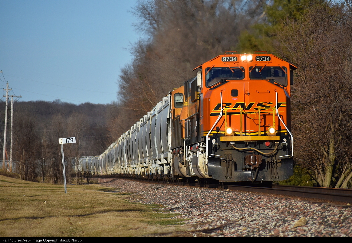 RailPictures.Net Photo: BNSF 9734 BNSF Railway EMD SD70MACe at LeClaire, Iowa by Jacob Narup