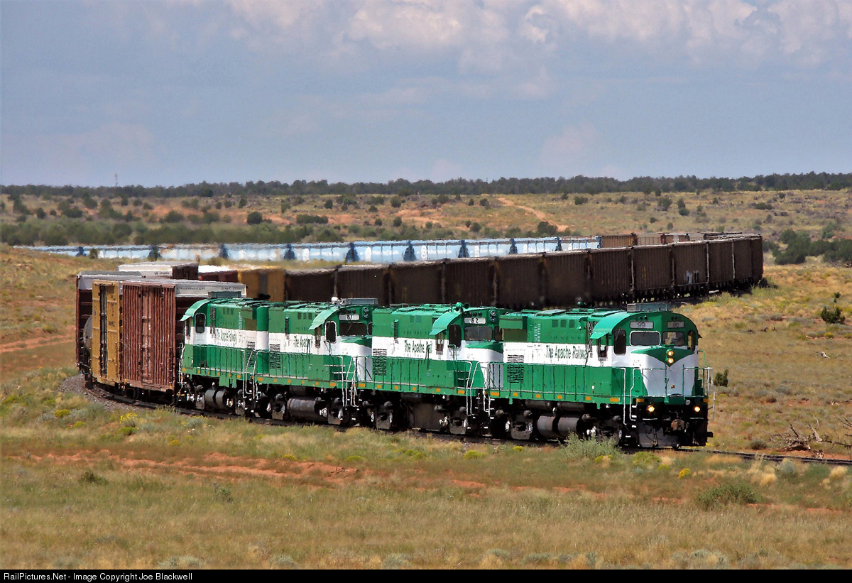 In the last year its major customer was in business, a lengthy 95 car Holbrook turn is headed for the BNSF interchange in Holbrook. Included in the train is the last empty coal train the Apache will deliver to the BNSF for loading before shutdown of the paper plant.