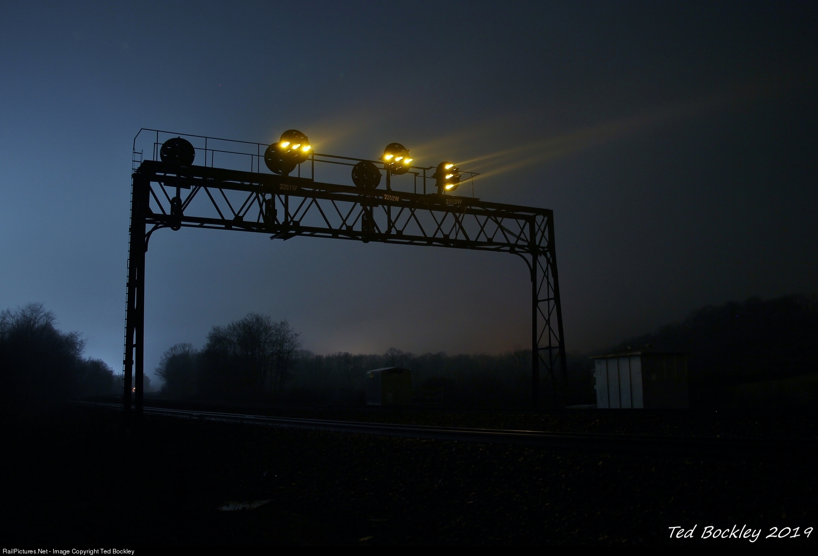 For decades, the position light signals of the Pennsylvania RR have stood the test of time. But all things must eventually come to an end. By the close of April 2019, these signals will fall victim to a signal upgrade project. On this quiet foggy night, these signals shine brightly into the night for an approaching westbound.