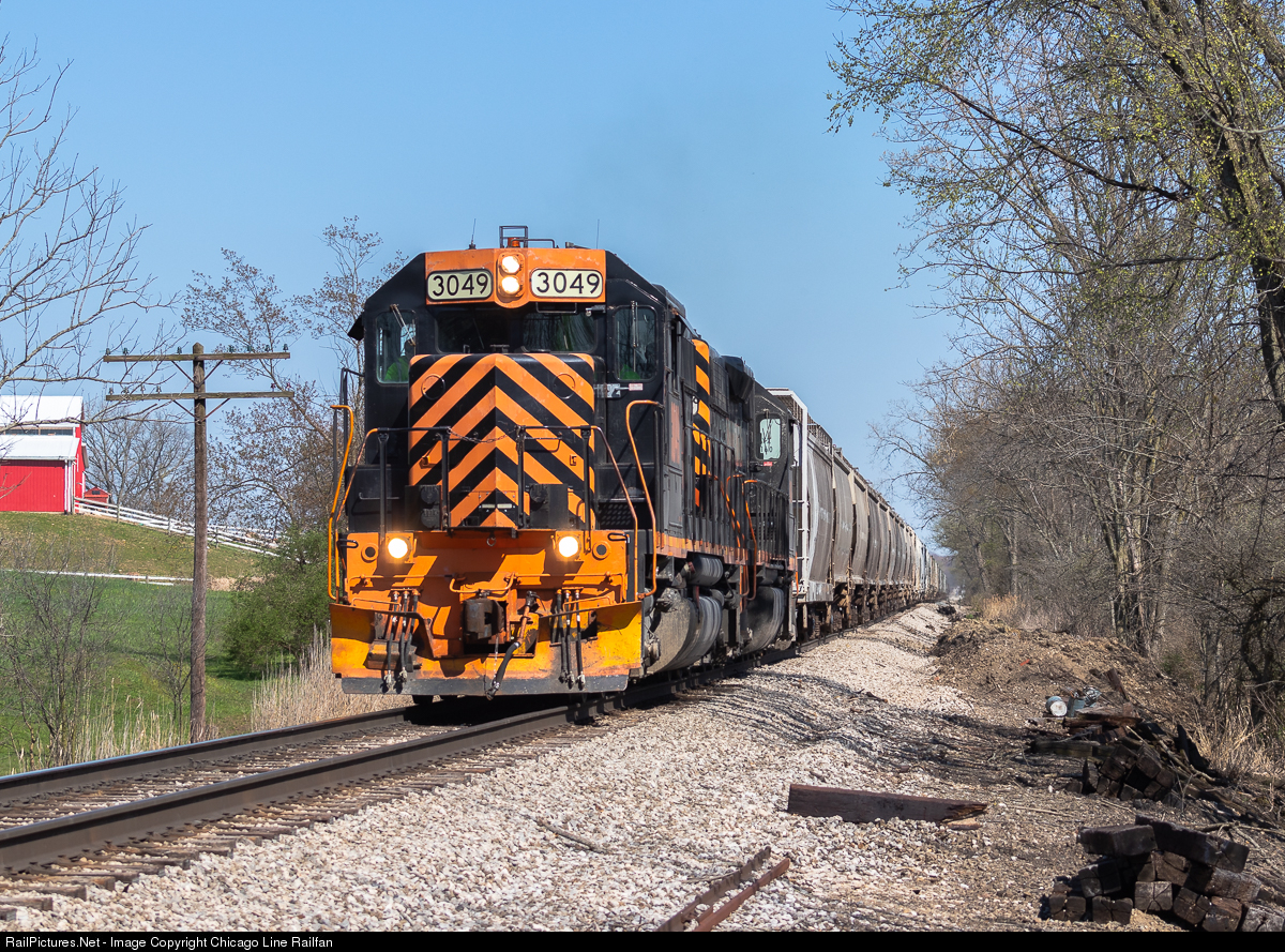 As WLE train #221 crawls at 10 MPH, it passes a farm near the outskirts of Creston, near Burbank, OH with Wheeling 3049 and 3046. This train would later pick up 4 cars for NS in Bellevue at Spencer, then swap crews with another eastbound at Brighton.