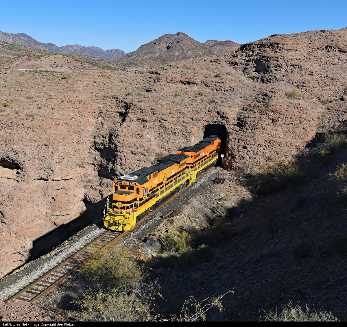 Arizona Eastern B40-8 #4009 exits Tunnel #1 with the first train of the morning, bound for the top of the hill at South Siding.