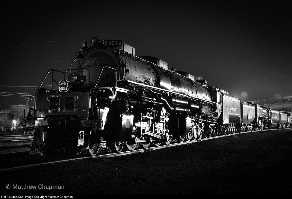 Union Pacific "Big Boy" 4014 rests in Rock Springs, WY after Day 2 of its maiden voyage to Ogden, UT. UP 844 is the second locomotive in the consist, probably feeling somewhat neglected since all the public's attention is fixated on the long overdue return of its big brother.