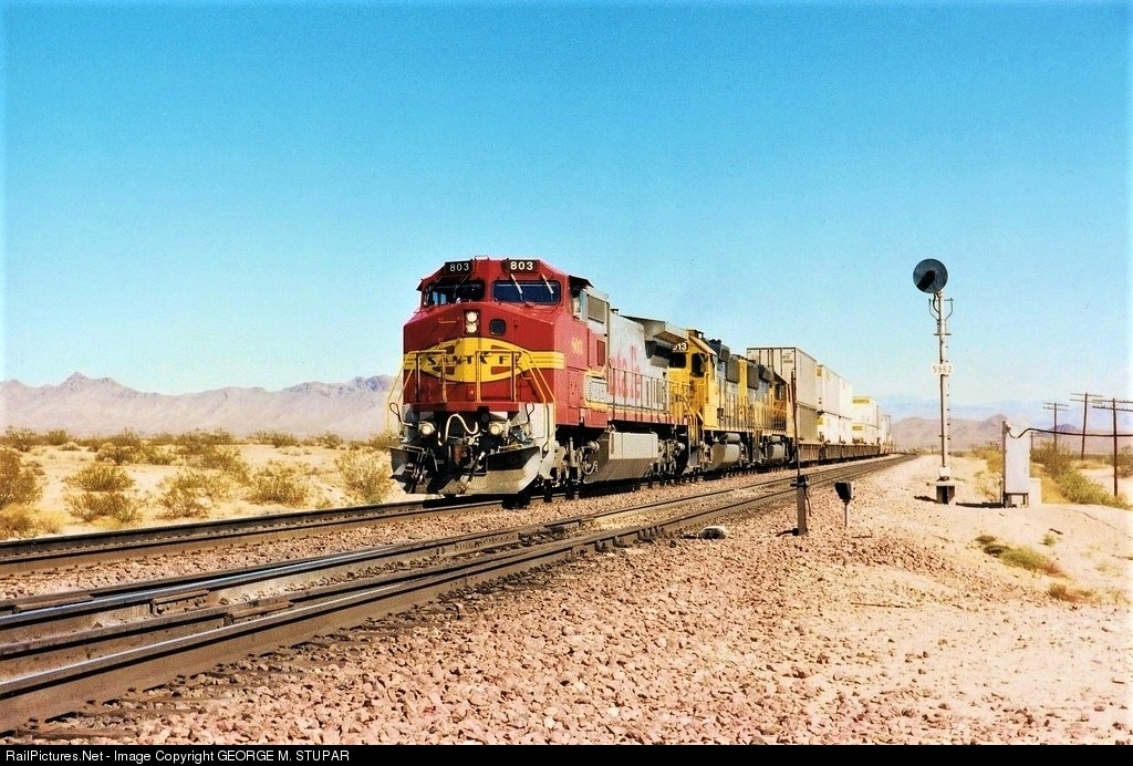 RailPictures.Net Photo: ATSF 803 Atchison, Topeka & Santa Fe (ATSF) GE C40-8W (Dash 8-40CW) at Ibis, California by GEORGE M. STUPAR