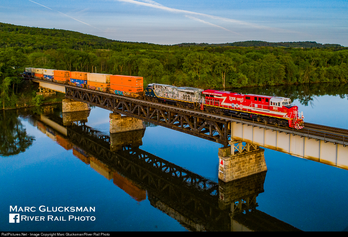 The right engine on the right day. As National EMS Week 2019 is being celebrated, it was appropriate to catch CSX 911 (Spirit Of Our First Responders) leading Q017-22 on Wednesday, May 22, 2019. This engine was recently dedicated by CSX to honor EMS, Police, and Fire personnel along with trailing unit 1776 (Spirit Of Our Armed Forces, ES44AC-H) Seen here at just after 0600, it is crossing the Mohawk River in Pattersonville, NY on its way across New York State.
