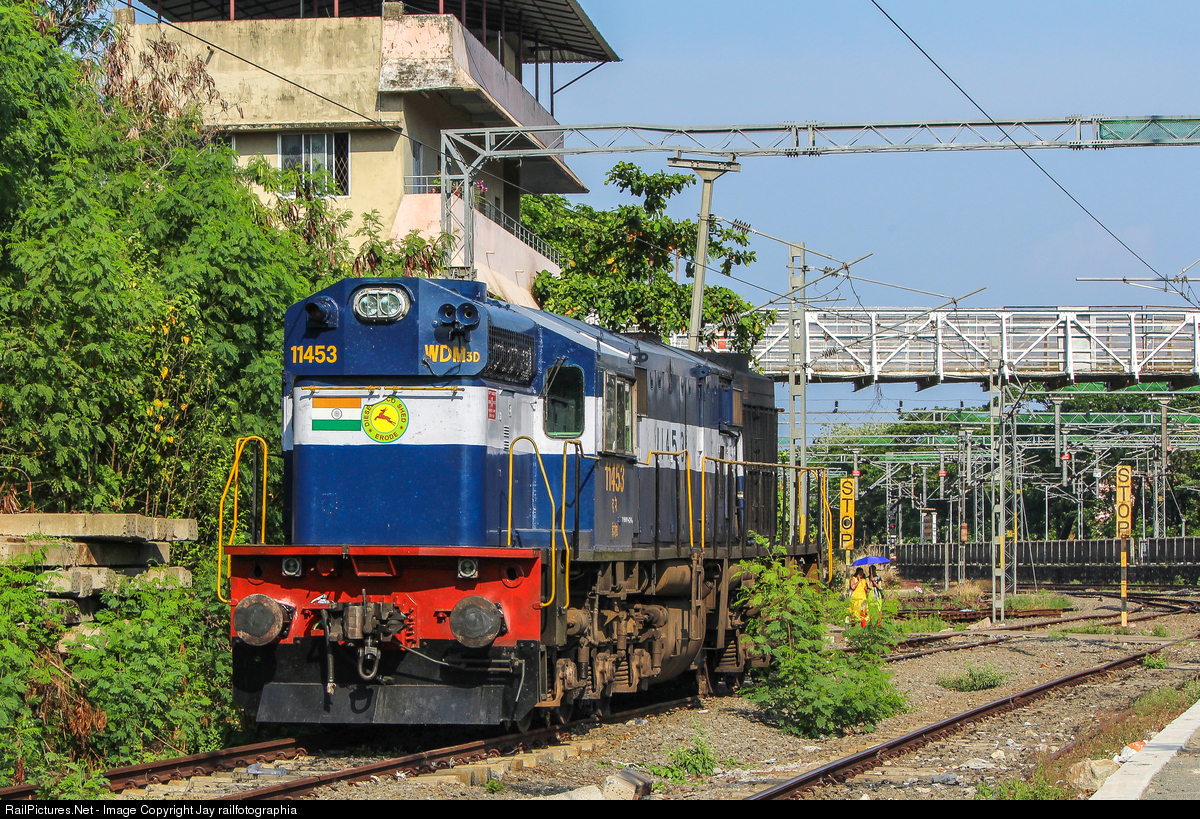 Central Railway Loco Workshop, Parel built ERODE WDM-3D, fresh from overhaul, resting at Kollam Jn siding on sunny evening