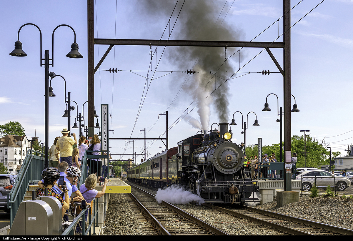 | New Hope & Ivyland's 2-8-0 No. 40 makes a special appearance in North Wales, PA with a series of 4 round trips to Gwynedd Valley and return (about 3 miles) to help celebrate the 150th anniversary of the Borough of North Wales. A SEPTA KLW SE15B switcher provided power for the southbound Gwynedd trips. This was the first time No. 40 ventured past it Warminster, PA in decades. There was quite a turnout! |