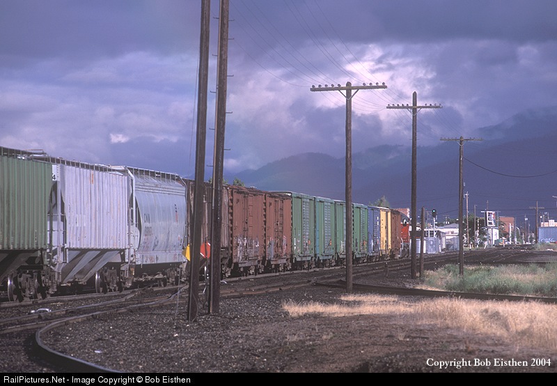Somewhere...over the rainbow! The skies darken and the rays of sunshine dwindle to just one...but check above the green boxcars for the rainbow!