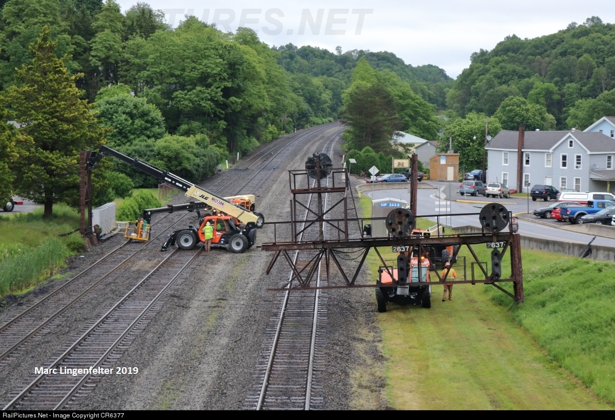 The end has come for the West Slope signals. Here at 263 the legs of the old signalbridge still remain