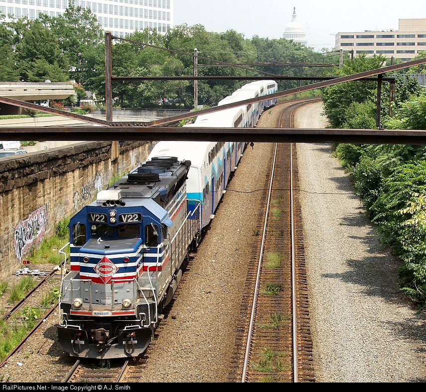 RailPictures.Net Photo: V 22 Virginia Rail Express (VRE) EMD GP40 at Washington, District of Columbia by A.J. Smith