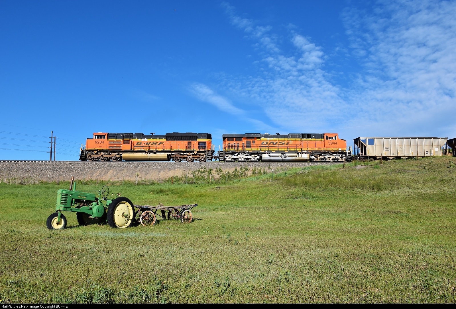 | There is about 4,277 horsepower difference between the 23HP John Deer D 1940's tractor and the 4,300HP SD70ACe. |