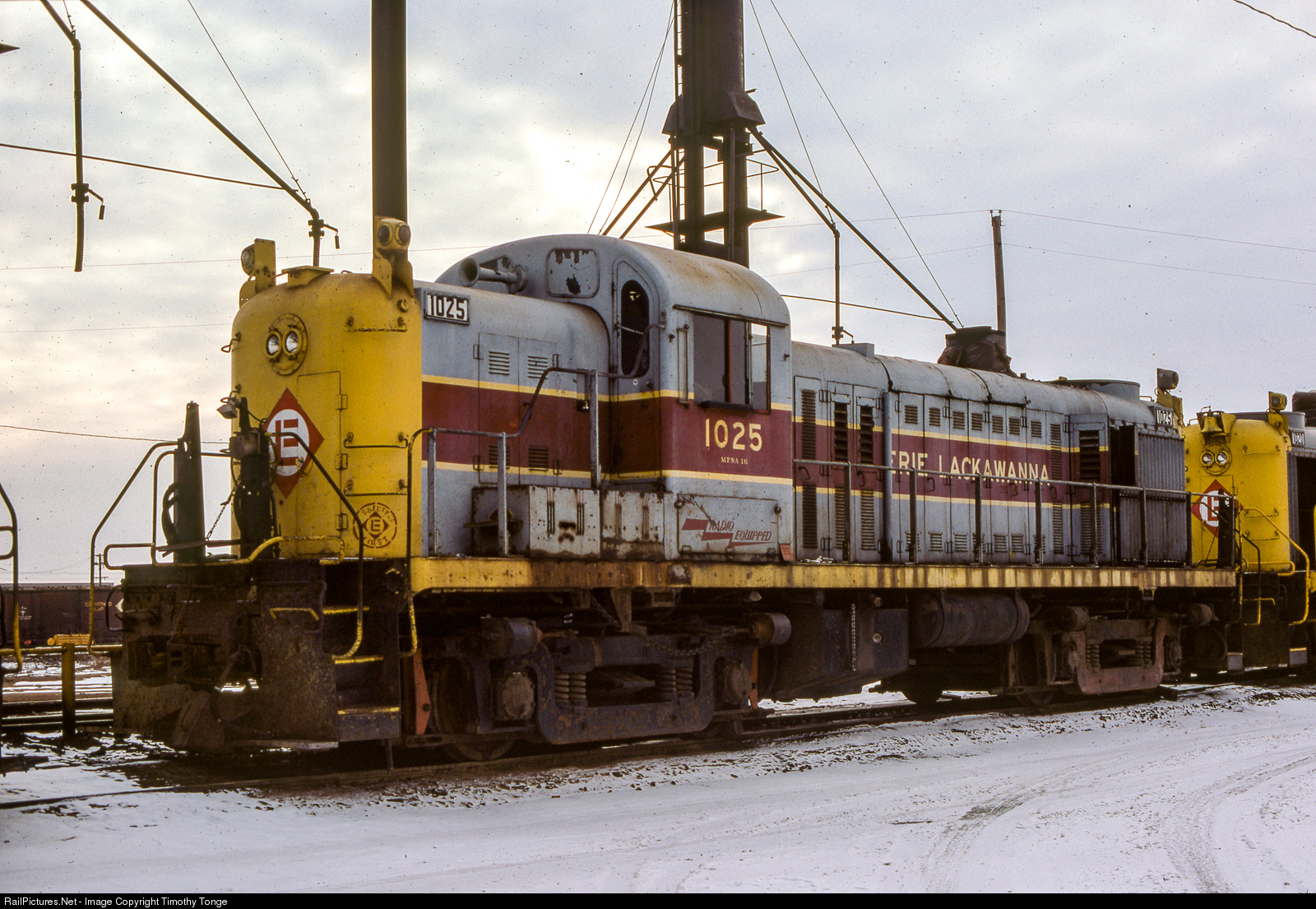 EL 1025 at the sanding tower, Croxton Yard, Secacus, NJ during January, 1976.