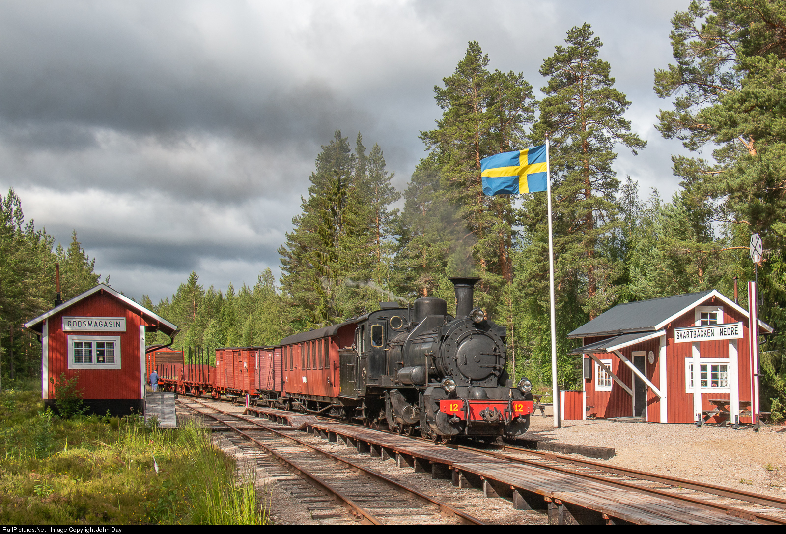 Until recently, photos of the Jädraås-Tallås Railway's Mallet facing the morning sun were unobtainable, as it always ran facing west. The repair of the turntable at Tallås has changed that, so that it is now possible to obtain charming views such as this, looking much as it did when the locomotive emerged from the Atlas shops in 1910 for service on this very line. |