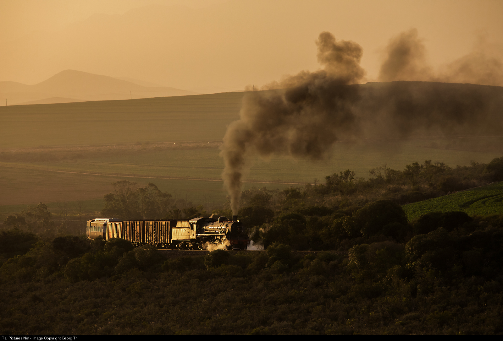 | The former South African Railways 4-8-2 19B # 1412 ((built by Berliner Maschinenbau AG, former L.Schwartzkopff/Berlin/Germany in 1930) of the Ceres Rail Company is pulling the mixed freight/passenger charter of FarRail Tours on the former New Cape Central Railway line Worcester-Mossel Bay between Drew and Jubilee. |