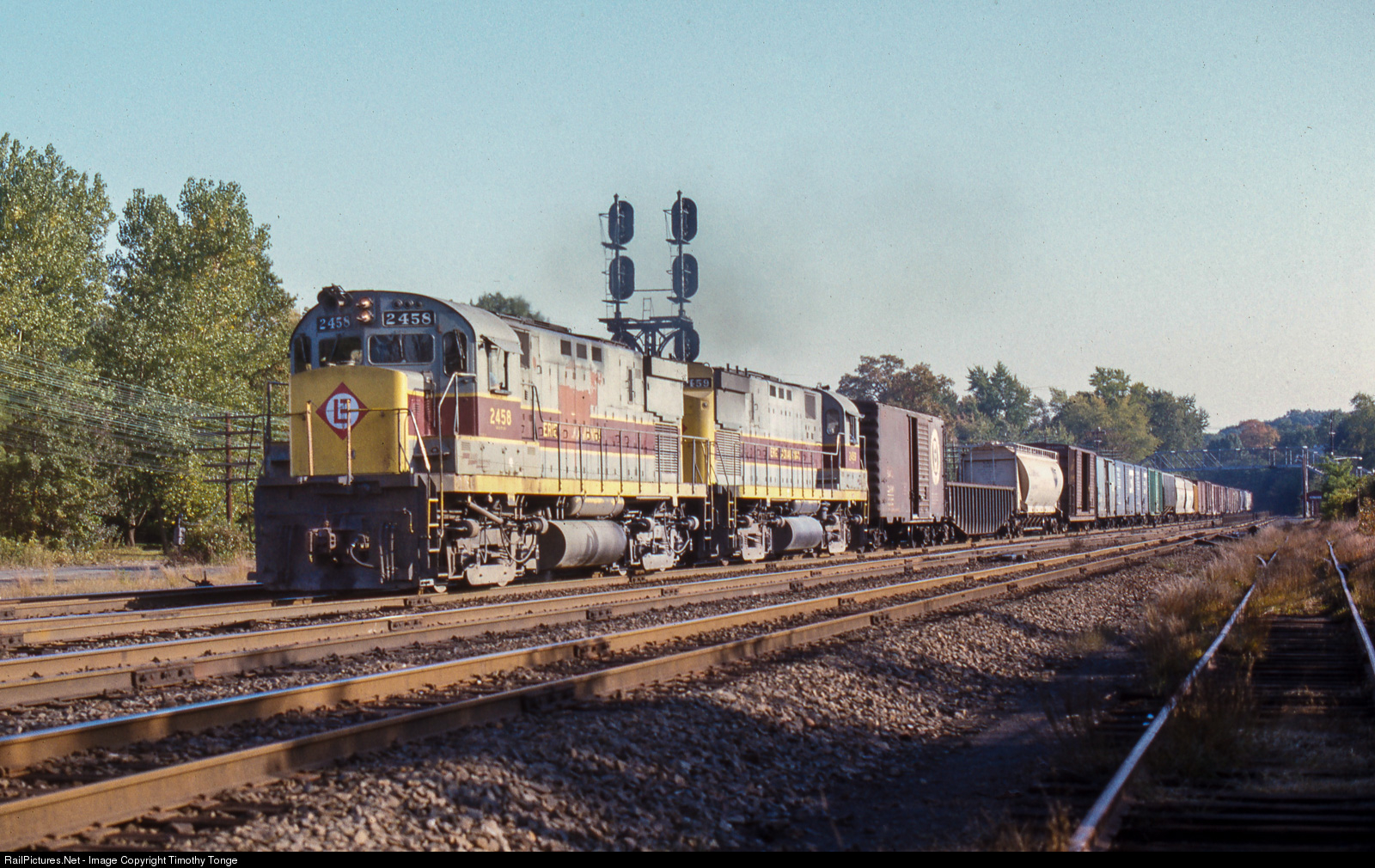 | Alco C-425 EL 2458 leads a westbound merchandise train at Waldwick, NJ, Oct 5, 1974. Who knew just how special this would be looking back 45 years!!! |