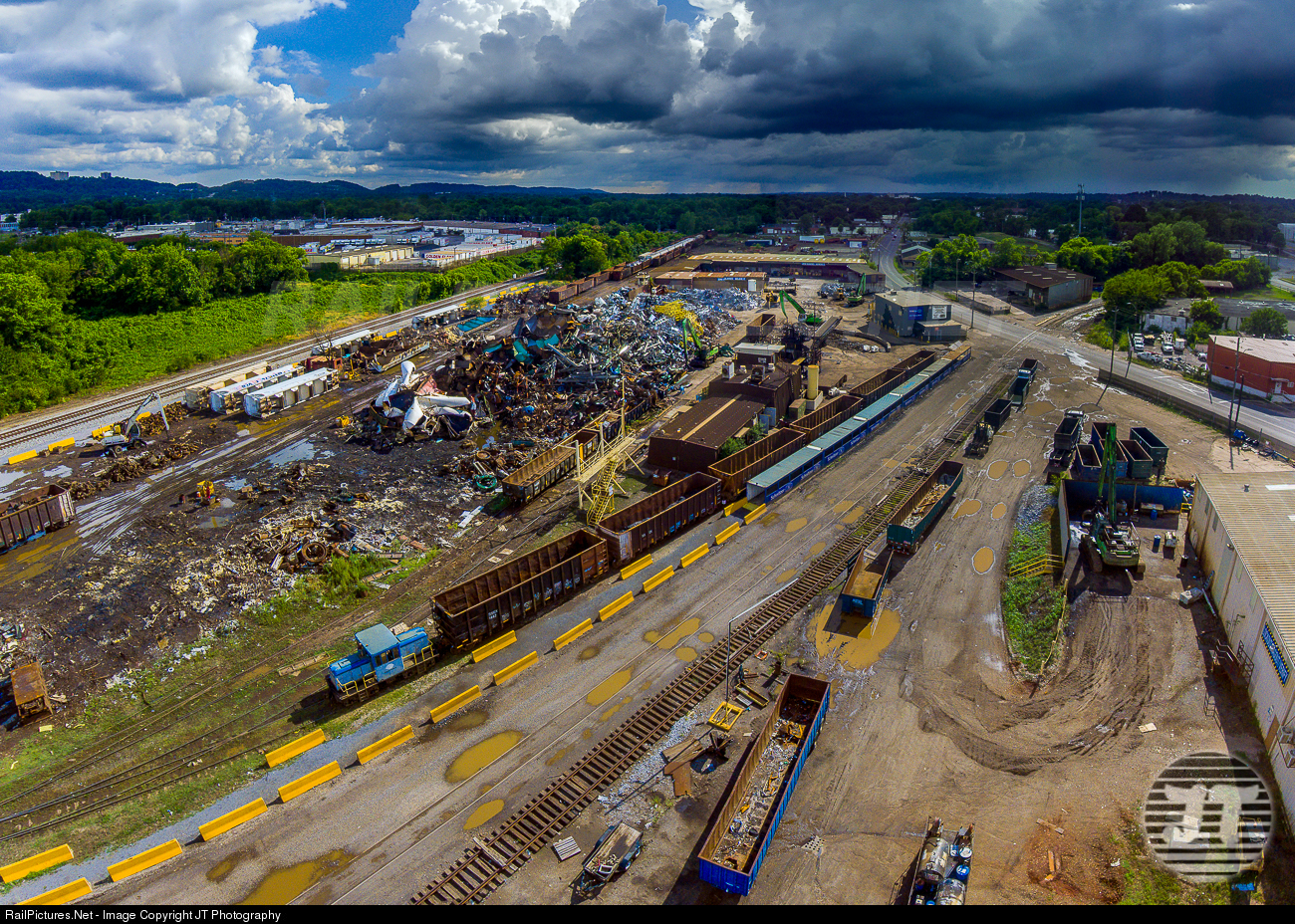 Schnitzer Steel's small 44-tonner (I think) shuffles cars around at their facility located in the middle of Birmingham, Alabama while a strong squall line quickly rushes in. One can't help but feel a sense of irony for the locomotive - after years of shuffling condemned cars around, it too will eventually reach the end of its service life and be scrapped here.