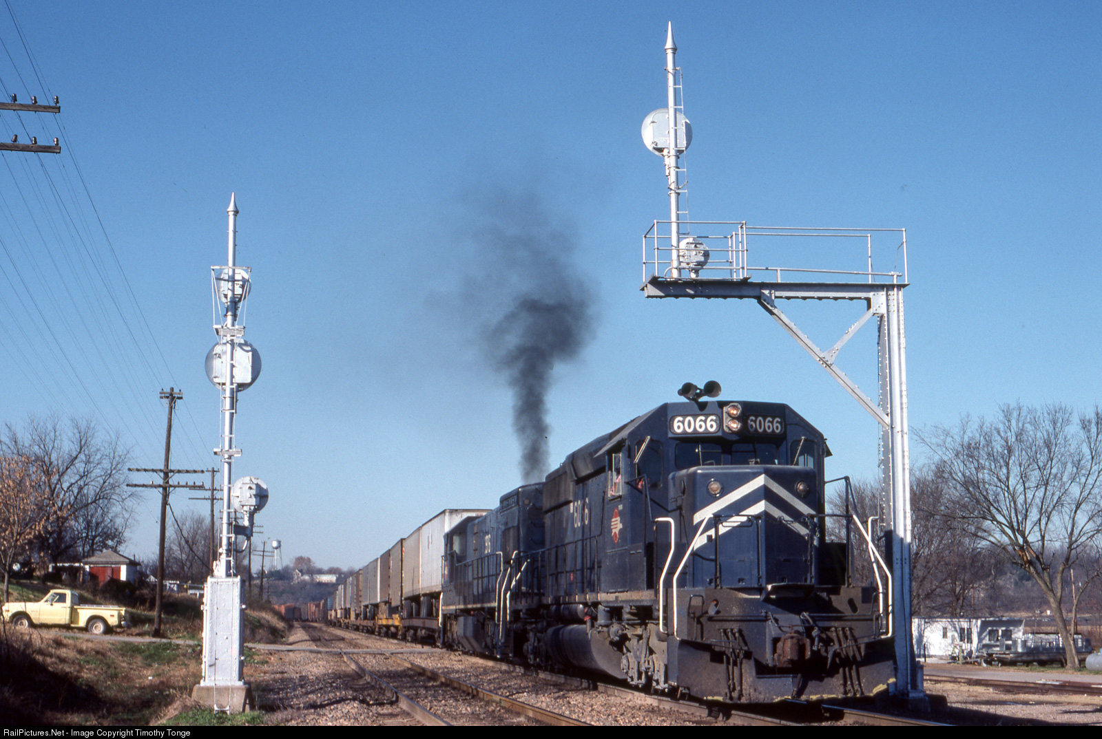 | MoPac 6066 leads a train at Oasage City, MO with the KSC train, 10am, Nov 11, 1981. |