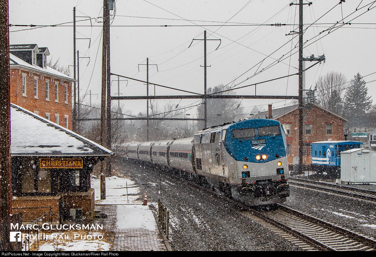 Hope you weren’t waiting. The former Pennsylvania Railroad passenger station in Christiana, PA is now just a blurry view out the window for the passengers of Amtrak Train 42 (Pennsylvanian) as P42DC 119 leads on the afternoon of Sunday, March 3, 2019. Conrail Caboose 21153 (Class N7E, ex-EL C-366) is likewise a static display and sits next to the for Christiana Freight Station across the tracks.