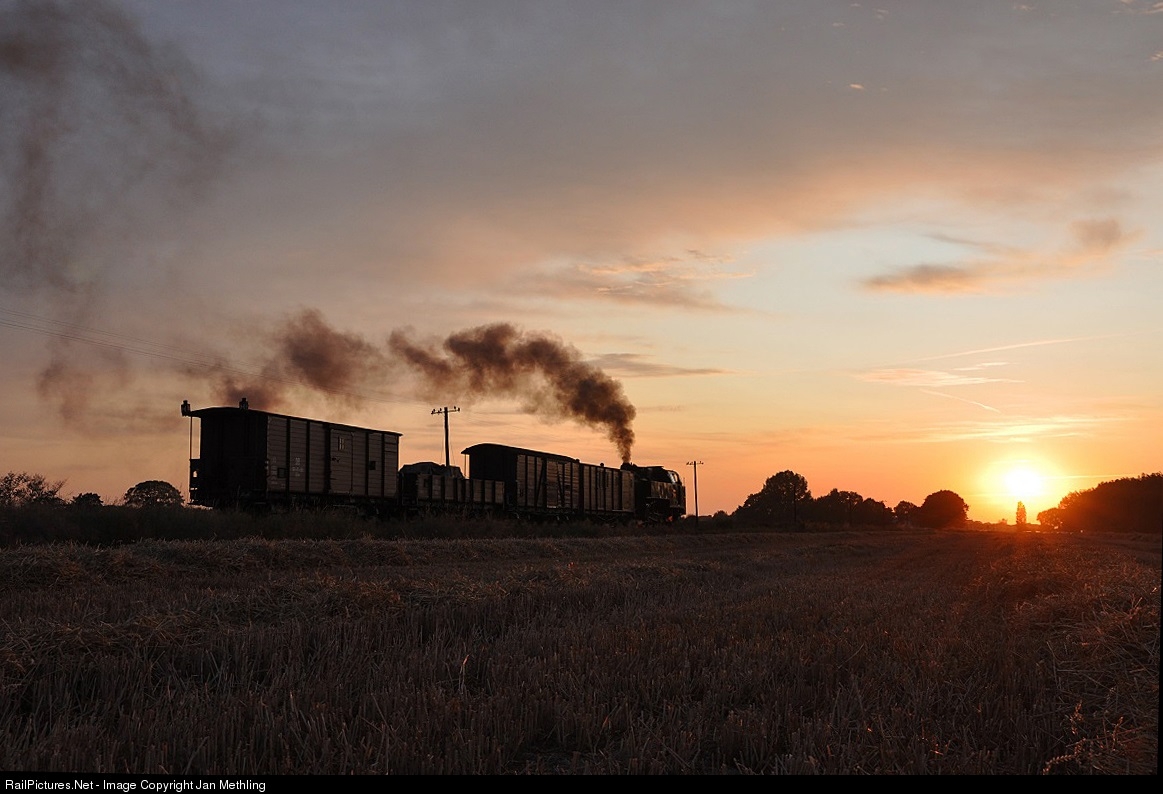 Molli's loco 99 323 with the evening-freigh-train nears Kühlungsborn at sunset
