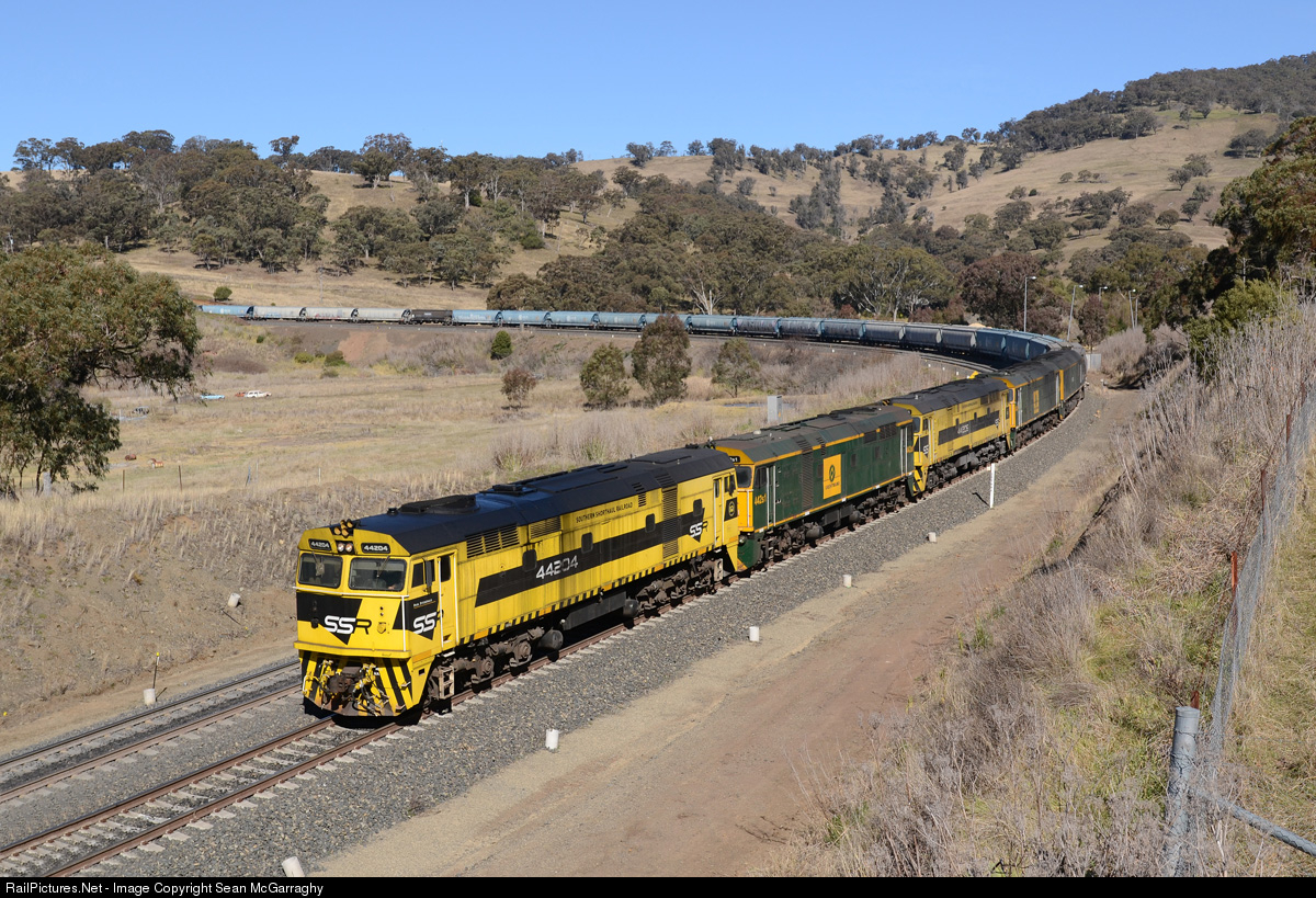 One of the more less inspiring combinations to grace the SSR operations in 2017, quad jumbos are at the front at Ardglen on Thursday 10 August 2017 as 44204, 442s1, 44206, 442s5 and RL304 head to Moree with 4547N empties for another load of export grain.