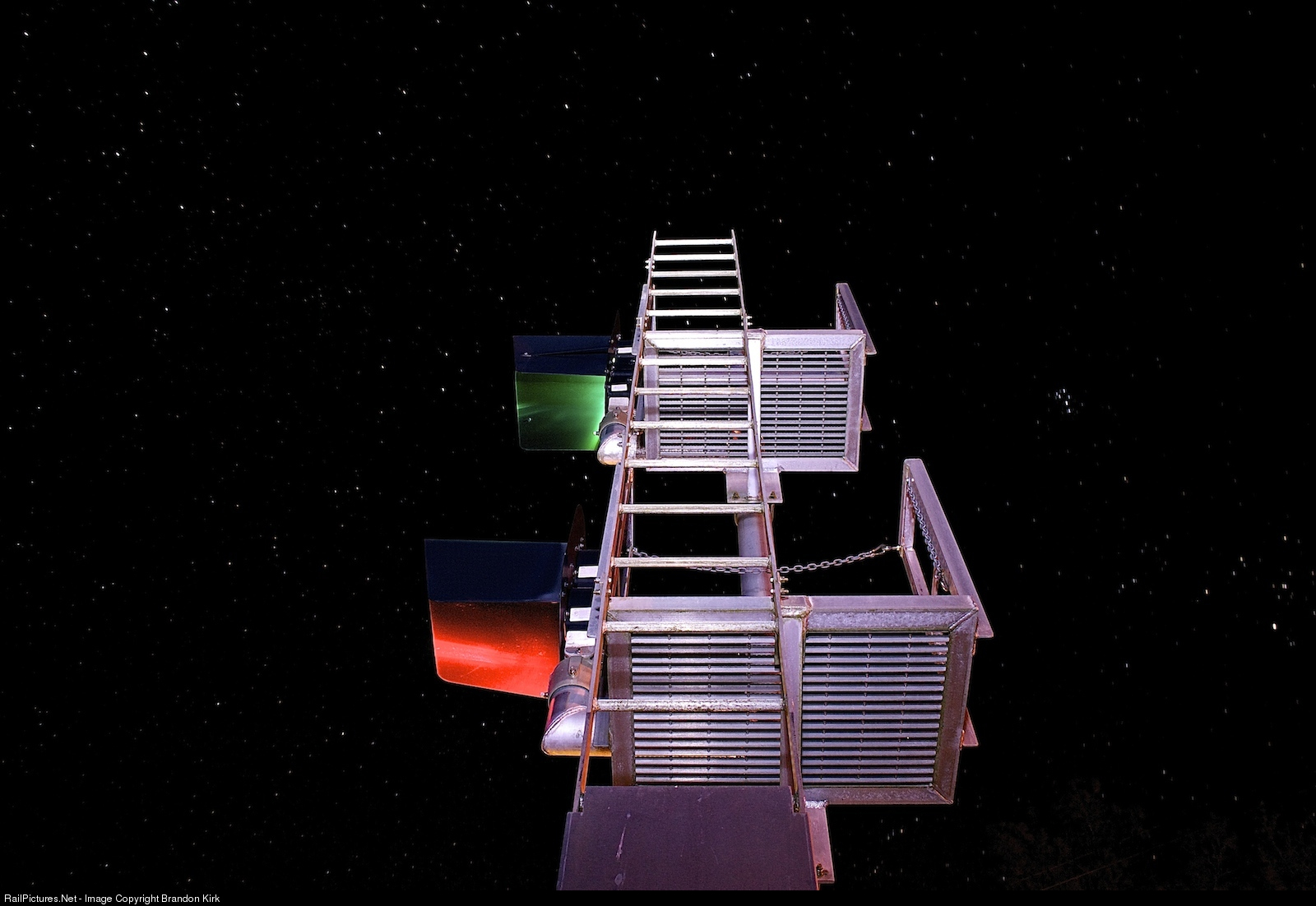 STARLIGHT and COLOR LIGHTS!... Under a beautiful night sky, having displayed this aspect countless times, the southbound signal illuminates a high green (meaning clear track ahead) for the next southbound to pass. Q513 isn't far away now and will soon knock this signal down.