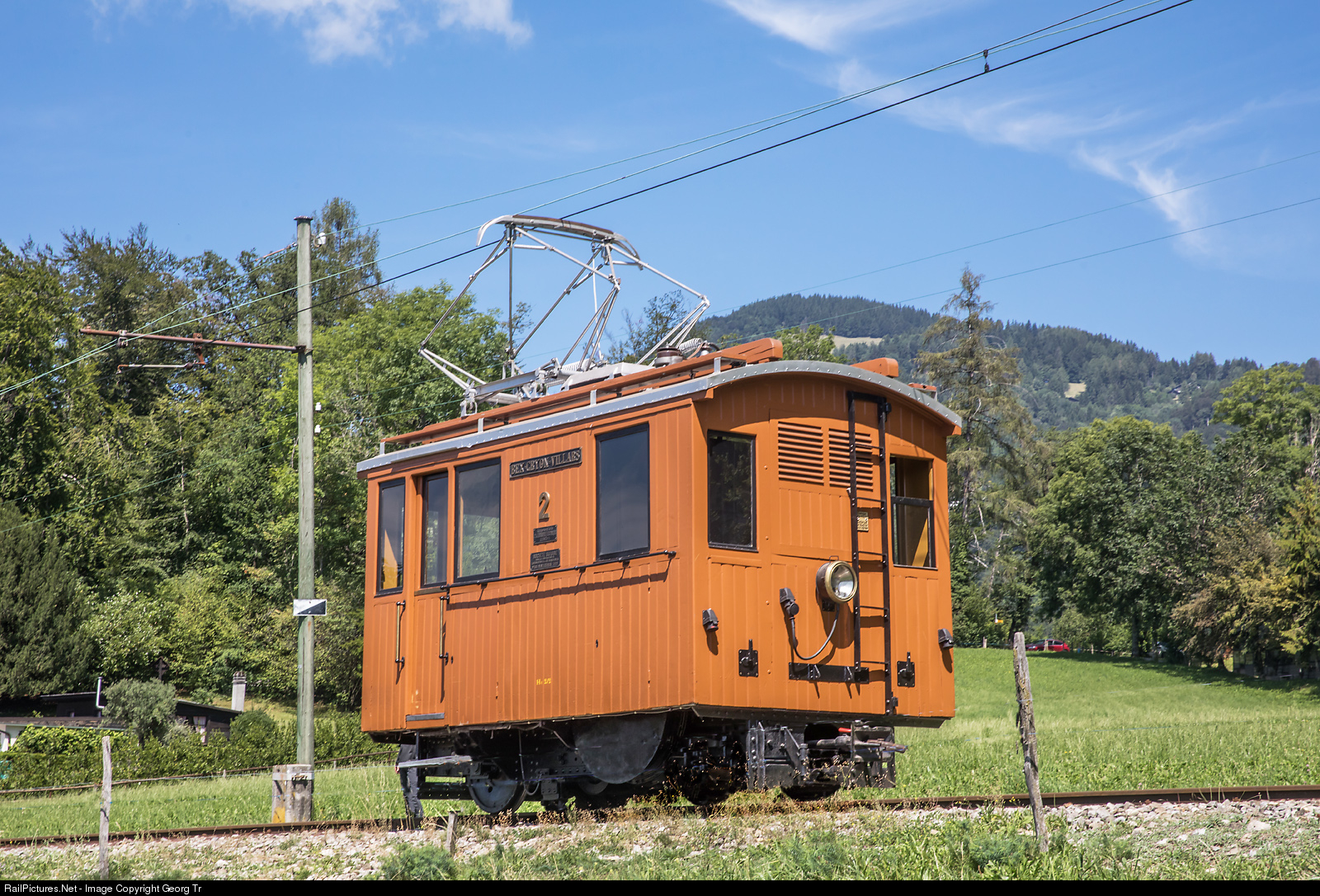 One meter gauge electric cogwheel mountain railway locomotive from the beginning of the 20th century on the Blonay-Chamby Railroad Museum. The cogwheel (system Abt) locomotive He 2/2 # 2 "La Grisette" of the Bex-Gryons-Villars was built in 1899 by SLM (fabrication number # 1196) and the compagnie de l'industrie electrique de Genève (CIE) (which became later the SAAS). The locomotive was in service for the Bex-Villars-Bretaye railway till the late 1970' for shoving the snow plow. It was then painted grey, so it was named "the grey" (La Grisette in french). After withdrawal is was renovated and painted in this original brown by the association Ferroviaire Bex-Villars-Bretaye (BVB Promotion). In 2011 the locomotive came to the Blonay-Chamby railroad museum and is exhibited in Chaulin museum since 2014. The vintage locomotive was on the line for photo purposes, it is not operational any more and the Blonay-Chamby has no cogwheel sections.