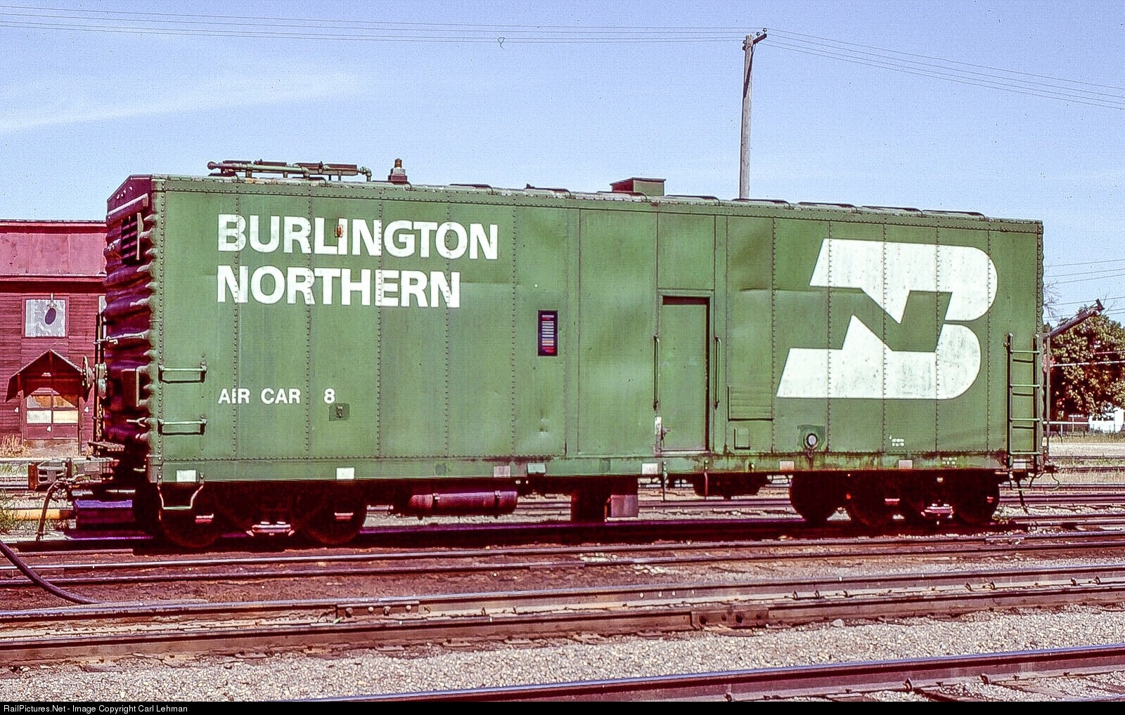 Due to excessive leaks, freezing, etc. BN utilized these converted boxcars, fitted out with Diesel engines and air compressors. Used in the winter, they maintained trainline pressure on long consists and vacationed during nice weather.