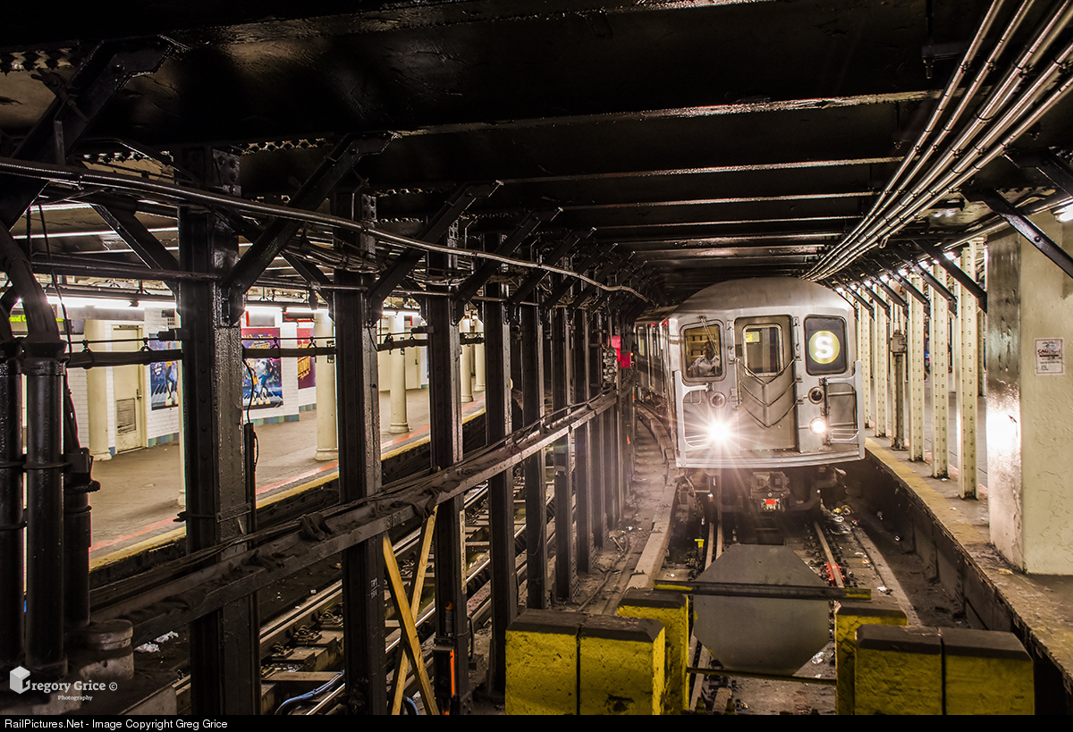 One of the three 42nd Street Shuttle trains pulls up to the bumper block on Track 3 at Times Square. Opened in August of 1918, the 42nd Street Shuttle runs between Times Square & Grand Central on part of the original IRT subway which first opened in October of 1904. Many aspects of the original subway could still be seen, but on the night of August 16th, 2019, construction work began that would drastically change the Shuttle. A majority of the work on the Times Square side involves eliminating all of Track 3 (pictured here), turning it into a huge island platform, walling off the original Track 4 platform and removing the bridgeplates that takes passengers over to the current Track 4 platform. When finished, this will allow for 2 six-car trainsets instead of the current 3 smaller trainsets, increasing capacity and make the Shuttle ADA compliant.