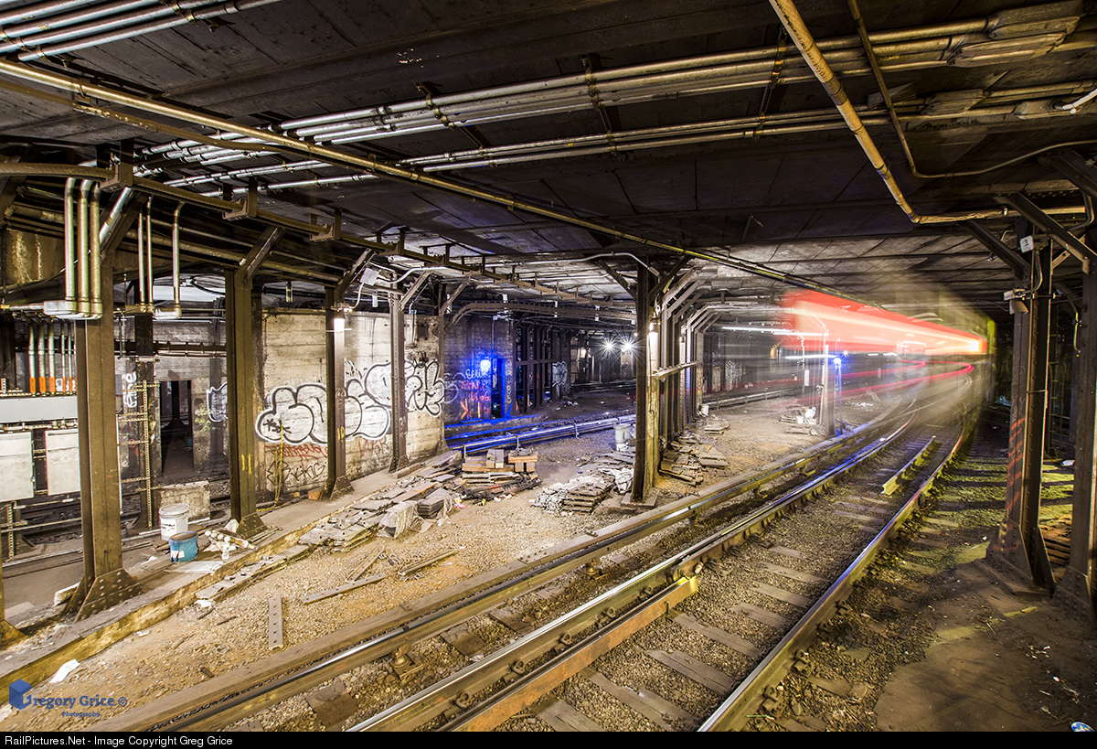 A northbound/ uptown local 1 train passes the old tunnel-way where the Broadway–Seventh Avenue Line & the now 42nd Street Shuttle tracks connected. Normal "through" trains used to use these tracks everyday up until 1918 where the Dual Contracts' "H system" was put into play, giving birth to the 42nd Street Shuttle. Soon this view will be a thing of the past, as work begins on transforming the 42nd Street Shuttle. After Track 3 is eliminated a wall will be erected forever blocking this view. |