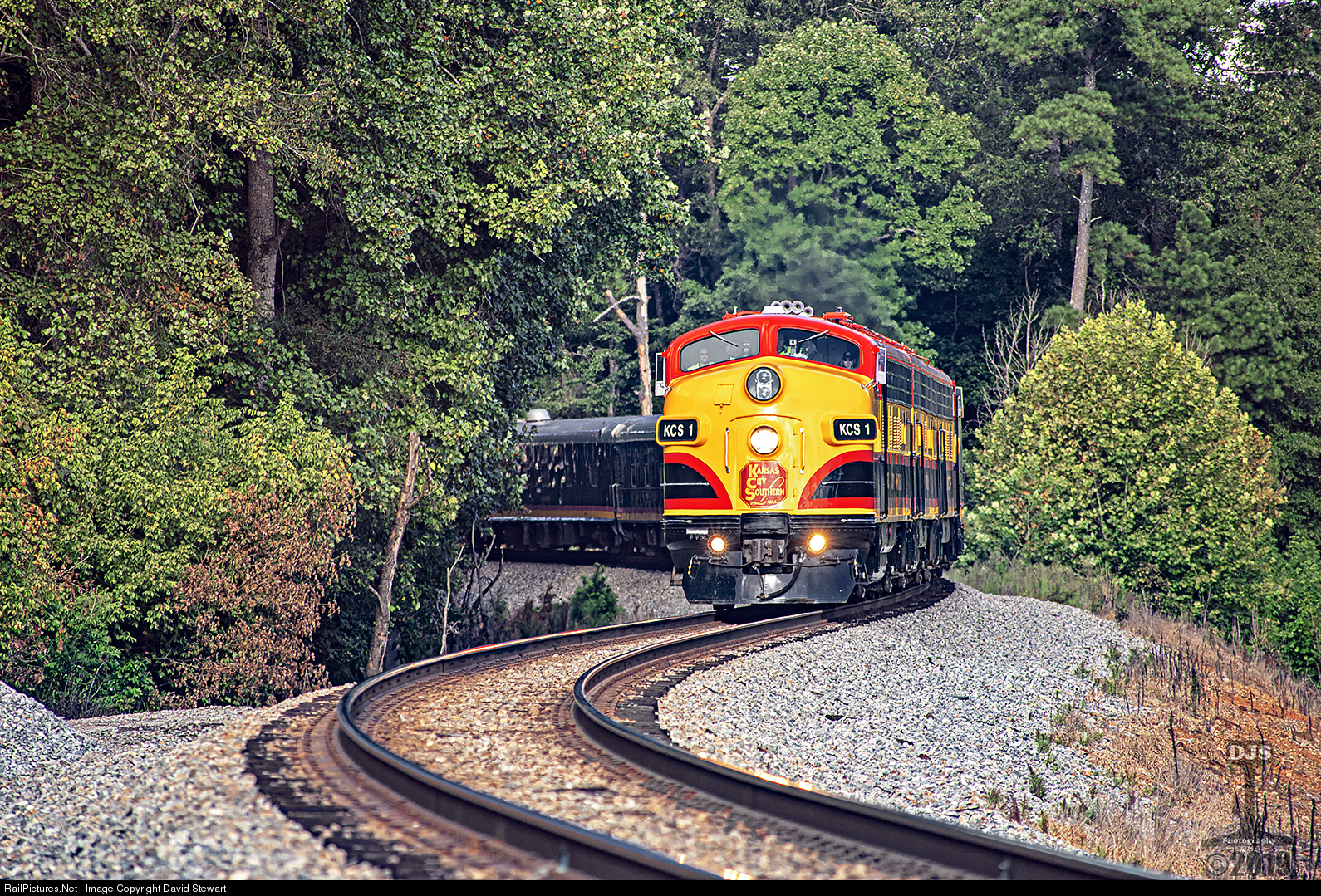 After arriving in Atlanta several hours earlier, officials from KCS and NS detrained, the train was turned and made ready for the return trip back to KCS which would send the entire consist to Kansas City for an upcoming event. Running as NS 089, the Kansas City Southern business train is retracing it's steps back west near Winston, Georgia prior to going into the siding at Villa Rica for the northbound Amtrak Crescent.