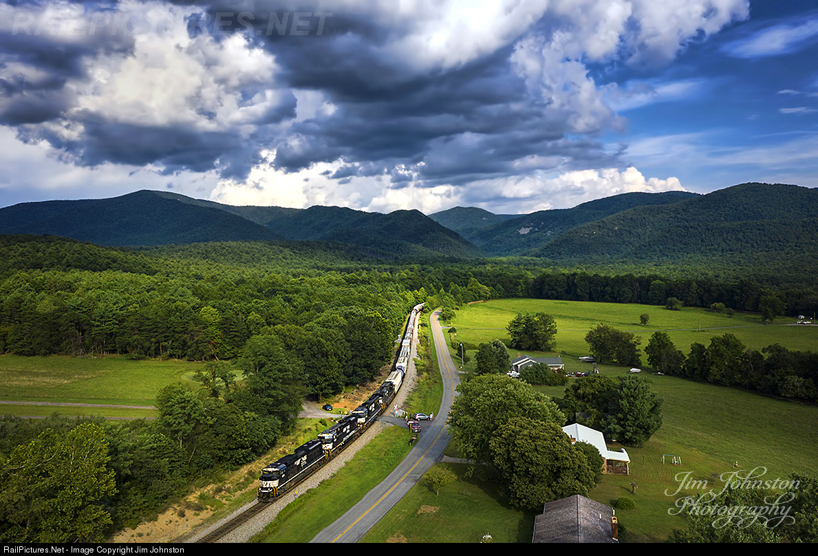| On August 19th, manifest NS 16T with NS 1189 struggles up Raphine Grade. During the 611 chase, 16T with 188 cars experienced several issues including a broken knuckle and DPU problems. Eventually intermodal NS 201 set off the SD70ACe 1189 to lead the struggling train to the north following the 9 hour ordeal.. |