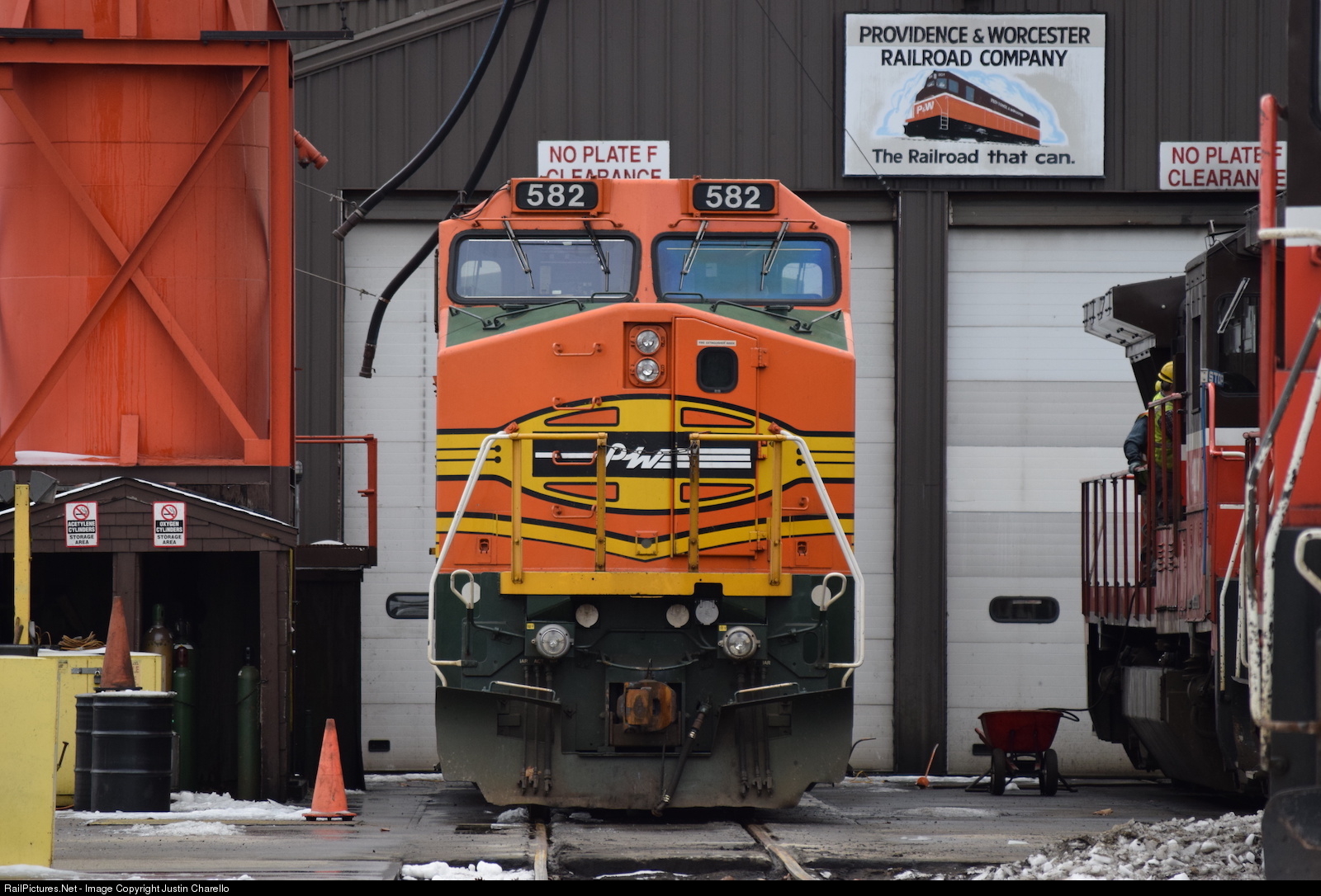 RailPictures.Net Photo: PW 582 Providence and Worcester Railroad GE B40-8W (Dash 8-40BW) at Worcester, Massachusetts by Justin Charello
