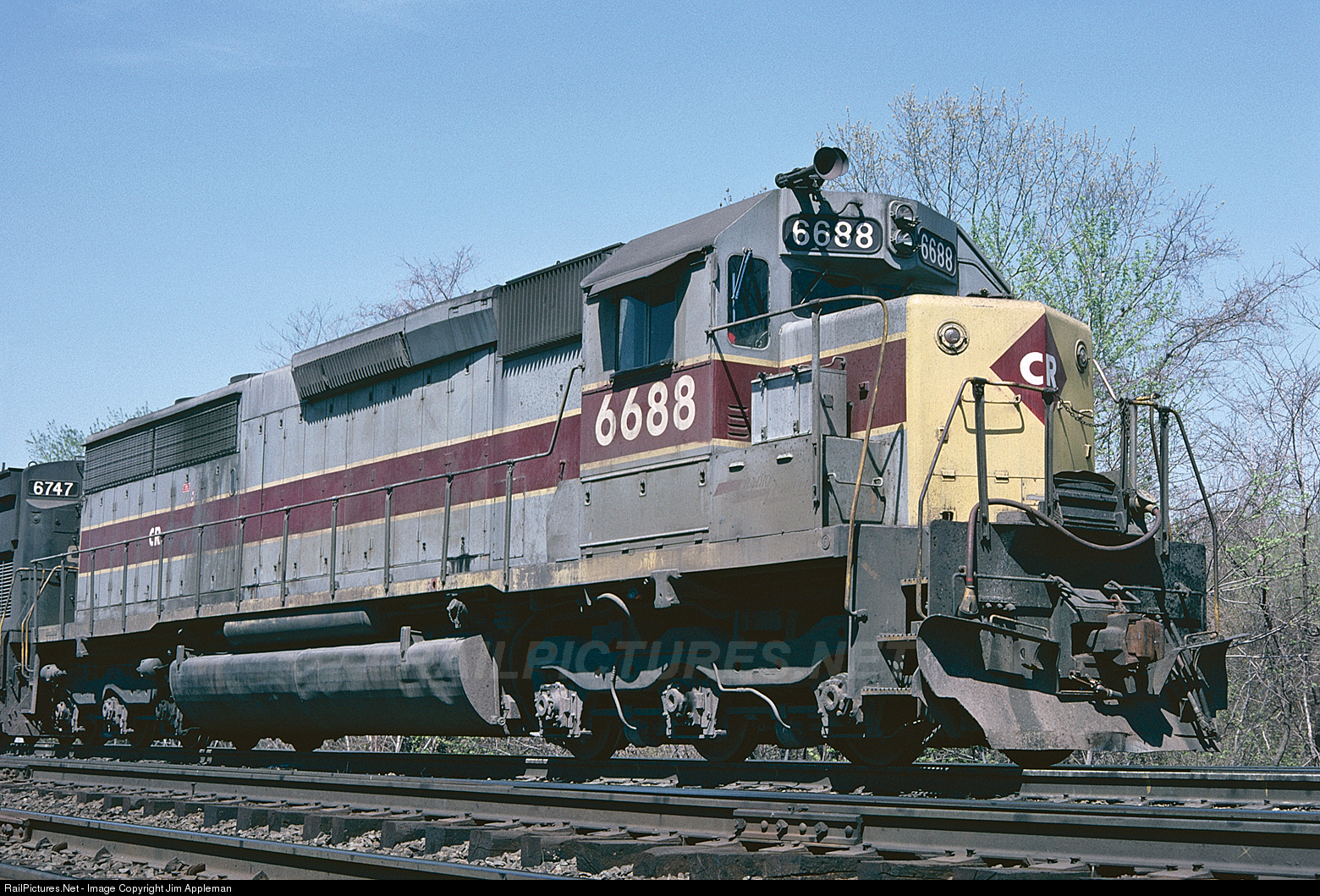 Still in its Erie-Lackawanna heritage colors but having received Conrail stenciling, CR 6688 was erroneously listed in Conrail's initial locomotive roster as an SDP45.