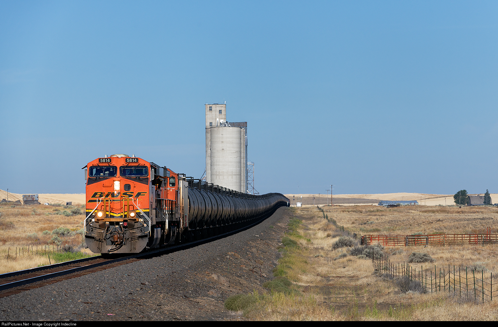 | An eastbound empty oil train departing Bluestem, WA after a long wait for Amtrak, a work train and a stack train. |