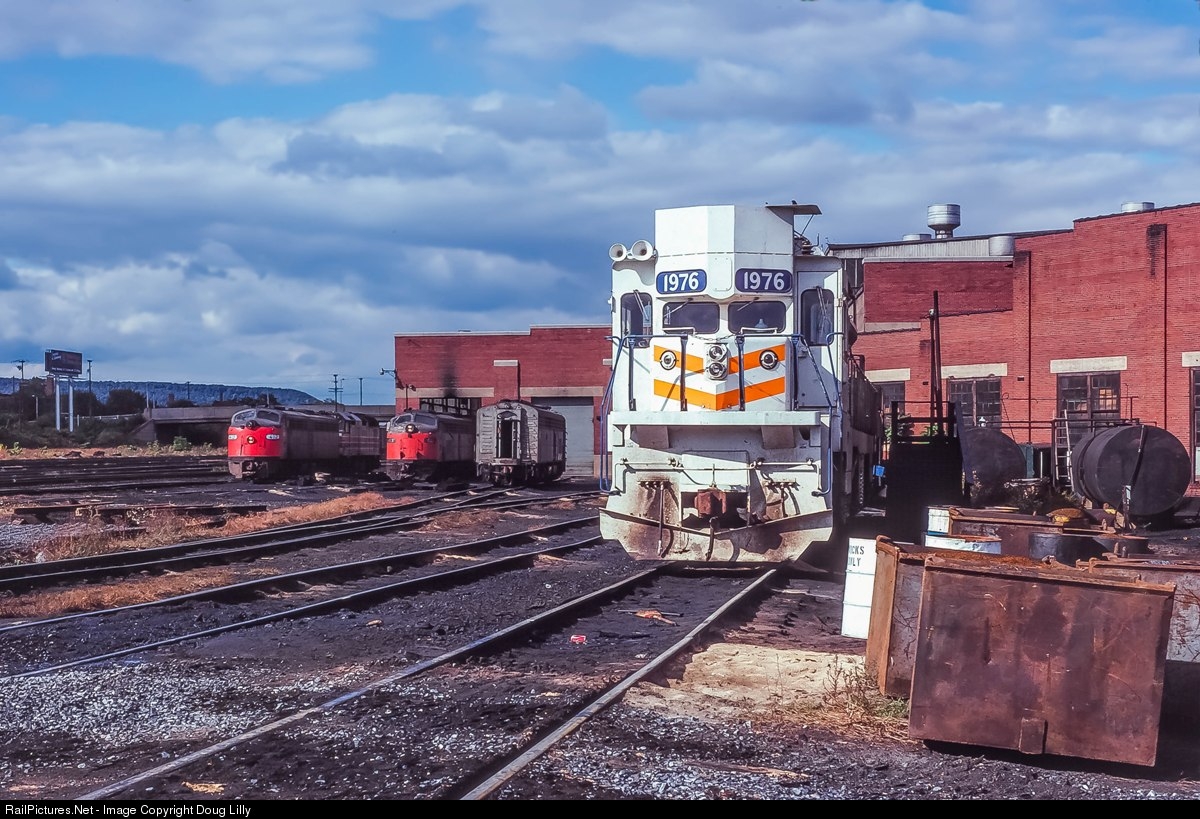 A few Amtrak E8’s nearing the end of their careers lay over at the Harrisburg engine terminal, while EMD GM10B demonstrator 1976 rests nearby. The future for new blood on former PRR electric territory was populated with diesels, and Conrail freights propelled by electric locomotives ended in a few years.