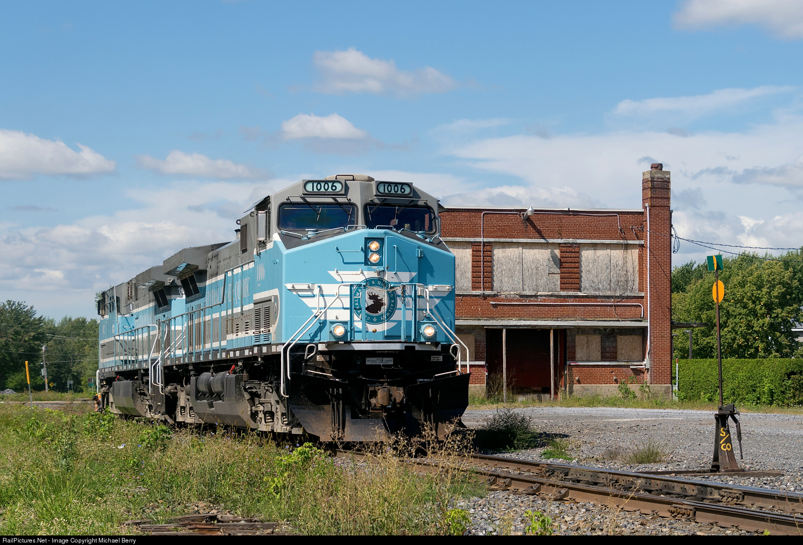 After dropping off CMQ 1 just west of town, CEFX 1006 & CEFX 1002 are passing the decrepit and empty Farnham Station, on their way to tieing on to CMQ 2 before departing eastwards.