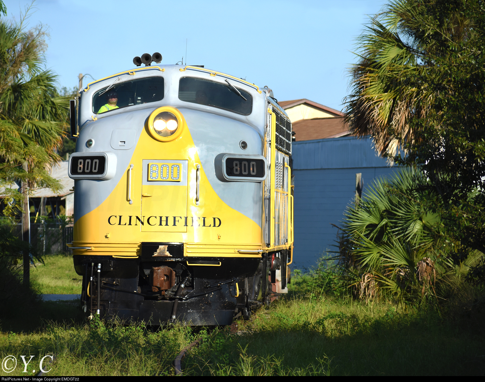 | Clinchfield 800 and Seaboard 1030 navigate the overgrown Florida Central branch to Winter Garden. These two locomotives were put on display next to the Central Florida Railroad Museum for a night shoot in time for the town's quarterly Cruz 'N Car show. The CFRM is located in the former Tavares & Gulf depot, which has been restored to look like its 1913 self. Photos of the night shoot can be found here: railpictures.net/photo/707206/